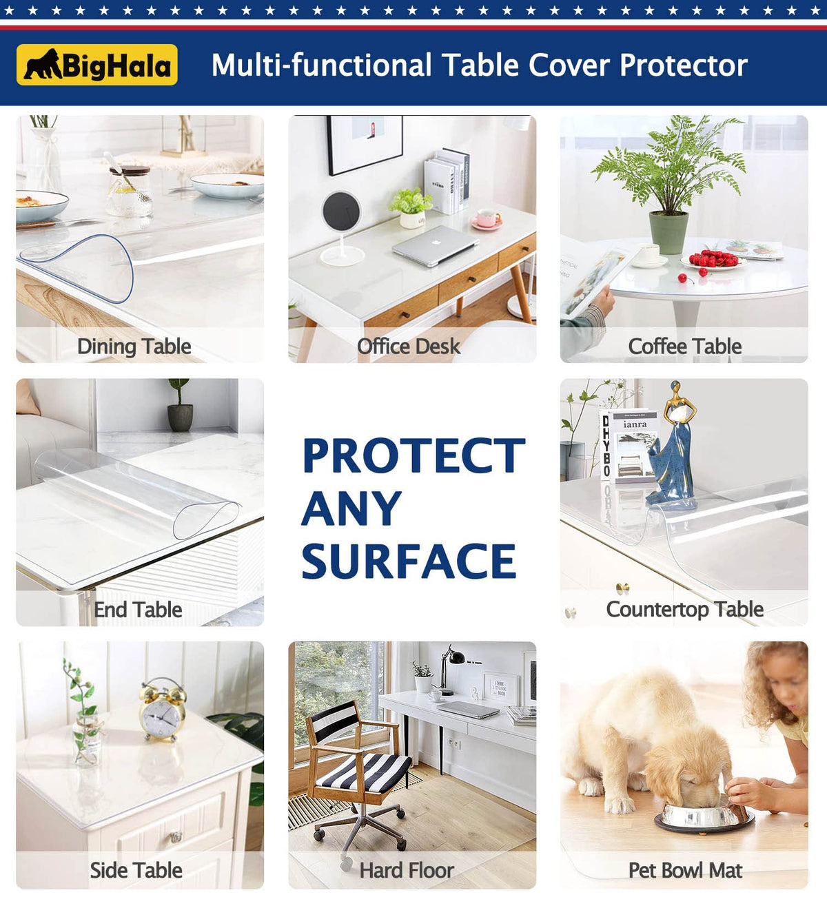 • Q: What surfaces can I use the table protector on? A: The table protector can be used on various surfaces including wood, glass, granite, and marble tables.