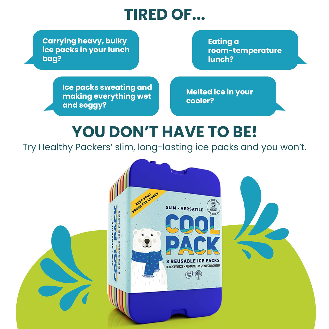 Ice Packs For Lunch Bags - Original Cool Pack | Slim & Long-Lasting Reusable Ice Pack For Lunch Box, Lunch Bag And Cooler | Free