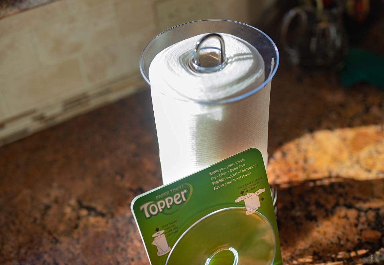 - Q: How does the Paper Towel Topper improve functionality? A: It allows you to easily tear off a paper towel without getting your hands dirty, as it keeps the top of the roll clean.