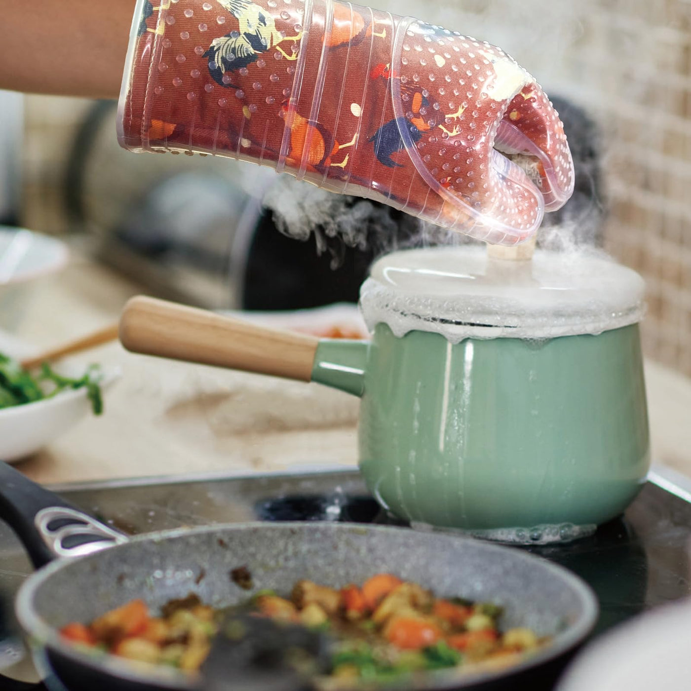 • Q: Can these oven mitts be used for grilling? A: Yes, these oven mitts are suitable for various cooking tasks, including grilling, baking, and handling hot pots.