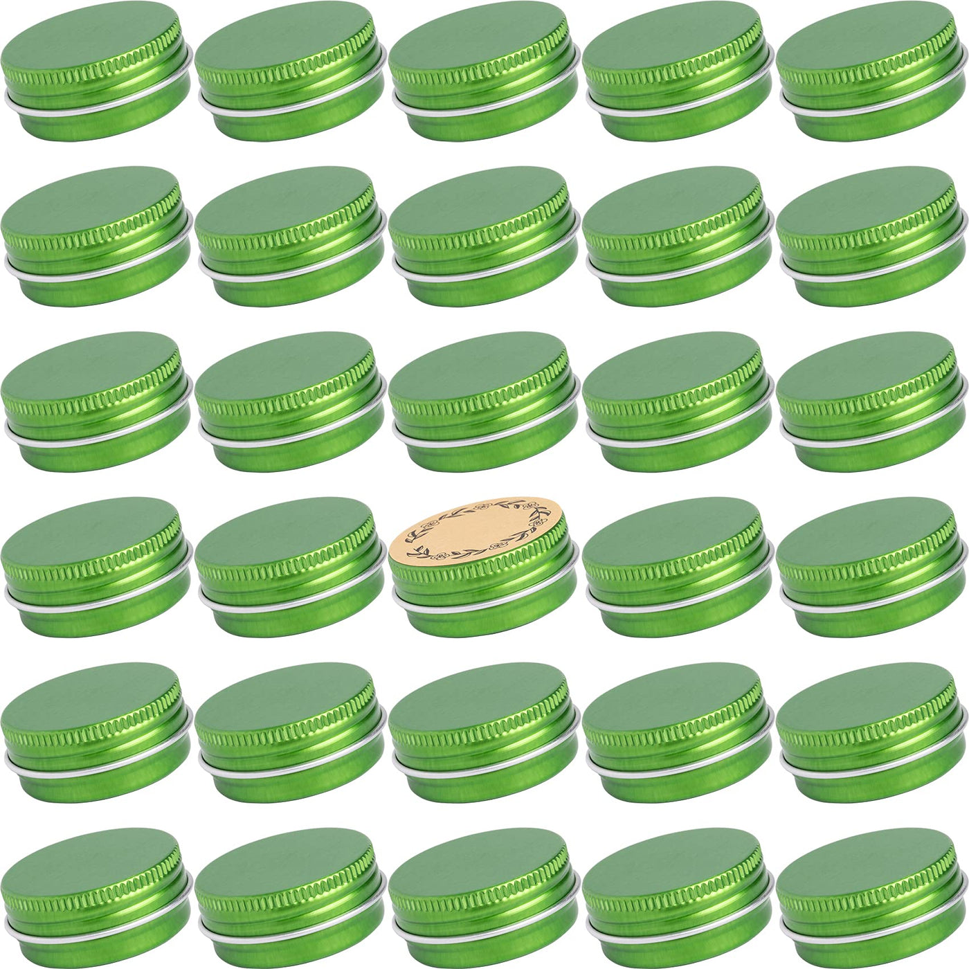 0.5 Oz Screw Top Aluminum Tin Jar With Screw Lid And Blank Labels (Green - Pack Of 32)