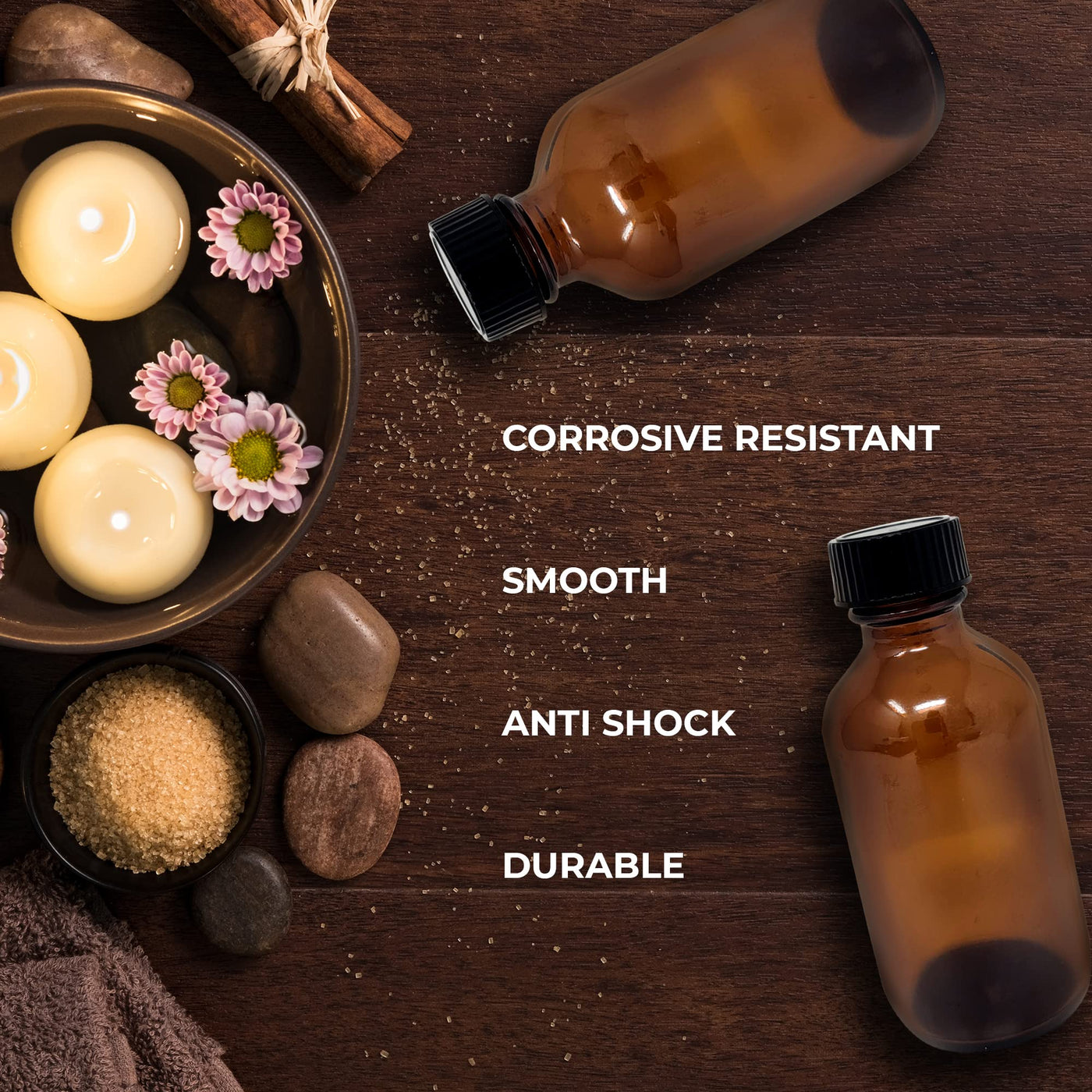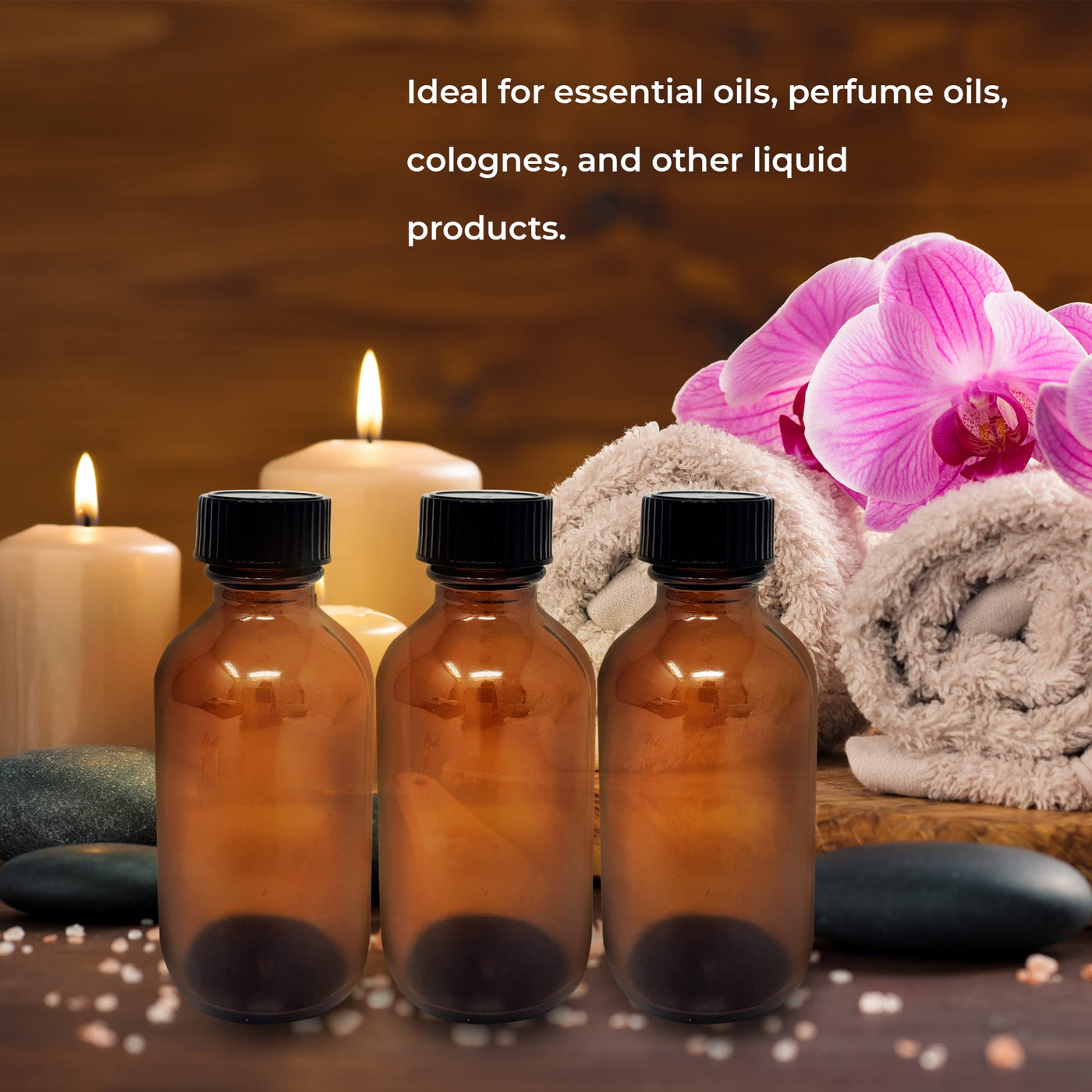 12 Pack (2 Oz) 60Ml Essential Oil Amber Glass Bottles - Round Boston Empty Refillable Amber Bottle For Many Liquids And Fragranc