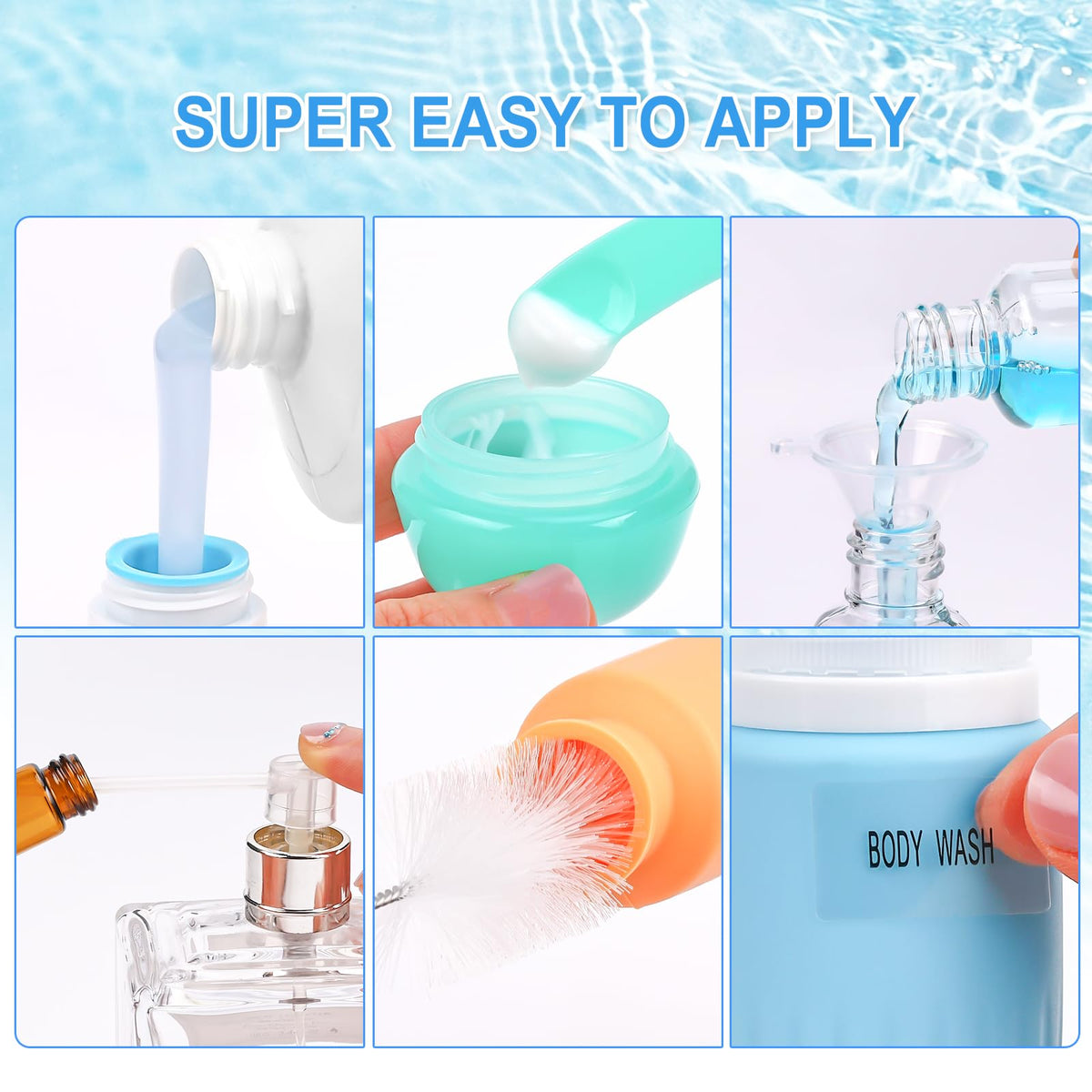 - Q: How do I clean the travel bottles? A: The travel bottles feature wide openings that make them easy to fill, clean, and refill. You can wash them with warm soapy water and let them air dry.