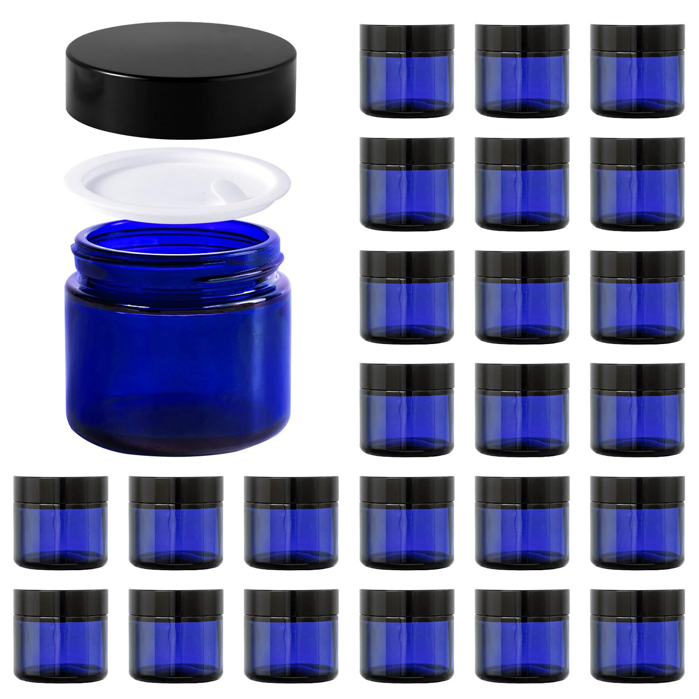 2Oz Jars With Lids, Hoa Kinh 24 Pack Blue Glass Jars With Lids Empty Cosmetic Containers Round Airtight Glass Jar With Inner Lin