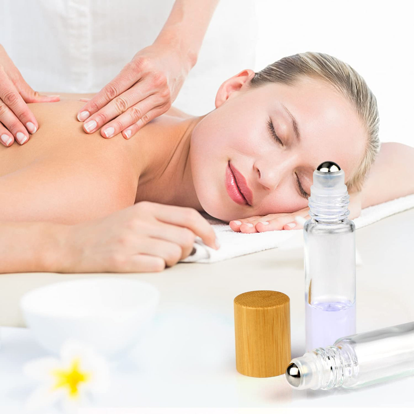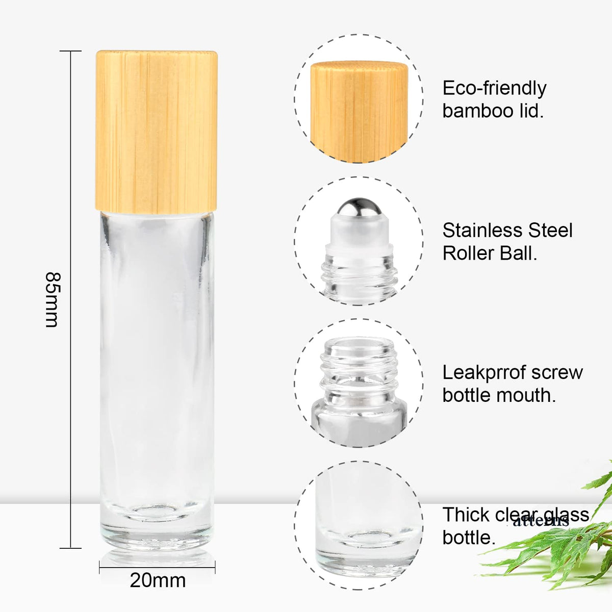 Clear Refillable Glass Empty Roll On Bottles Roller Bottle,10Ml Bamboo Roll On Bottle For Essential Oils Perfume Sample Bottles