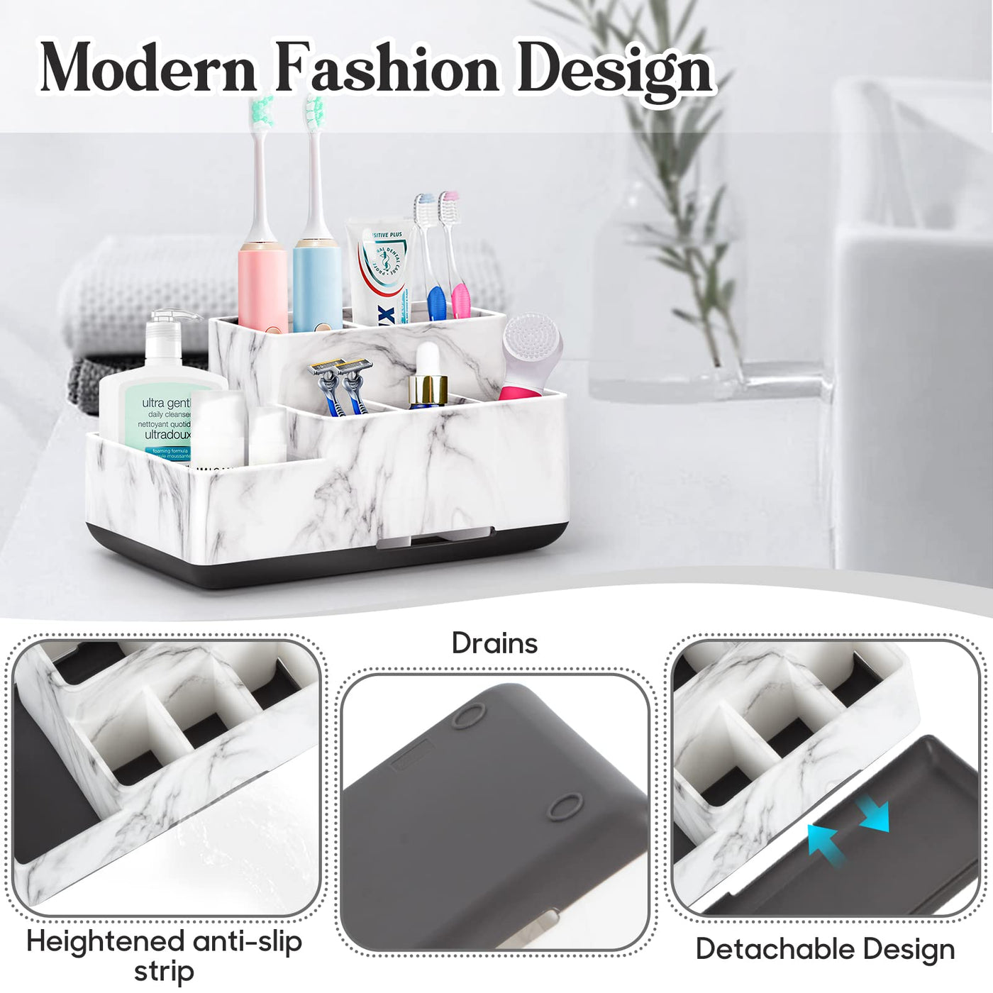Detachable Toothbrush And Toothpaste Holder For Bathroom Countertop, Large Bathroom Organizer Storage Anti-Slip For Shower, Kitc