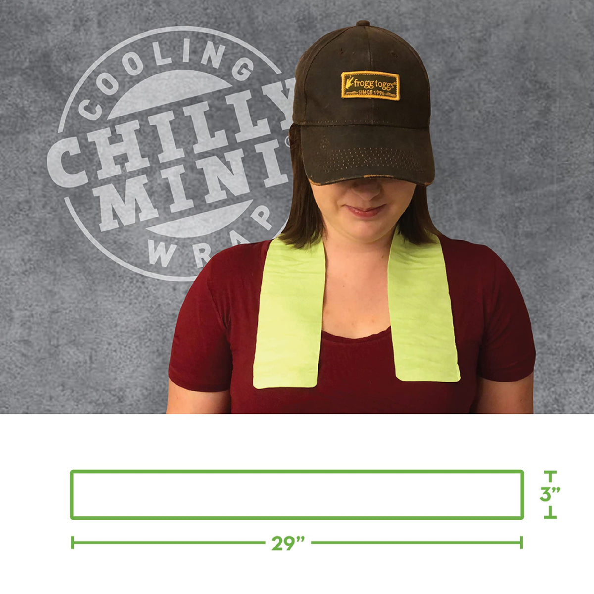 • Q: What is the size of the Frogg Toggs Chilly Mini Cooling Neck Towel? A: The Frogg Toggs Chilly Mini Cooling Neck Towel measures 29 inches by 3 inches.