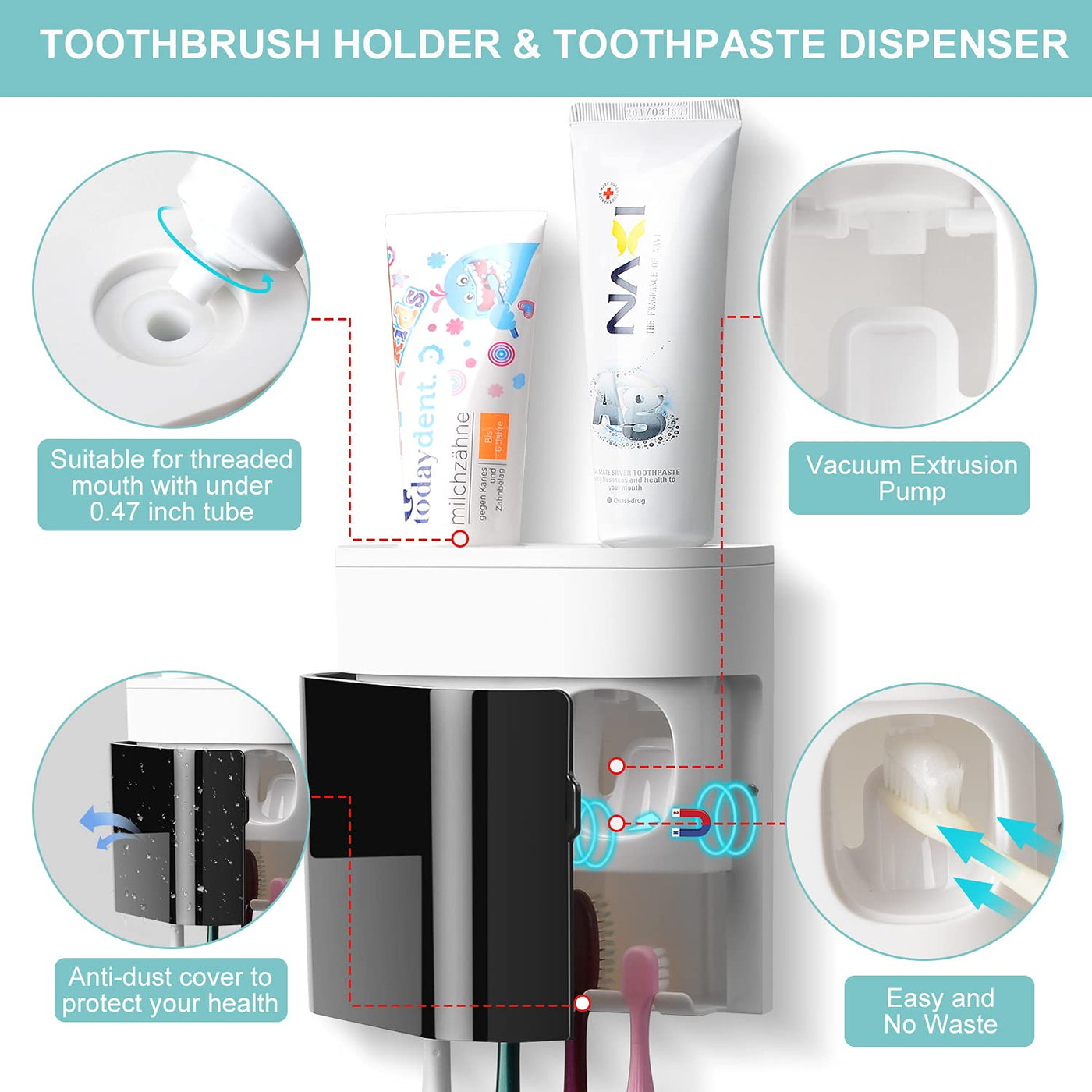 • Q: How does the automatic toothpaste dispenser work? A: The automatic toothpaste dispenser uses a vacuum extrusion pump that allows you to squeeze out a specific amount of toothpaste with ease. Simply press the pump to dispense the toothpaste.