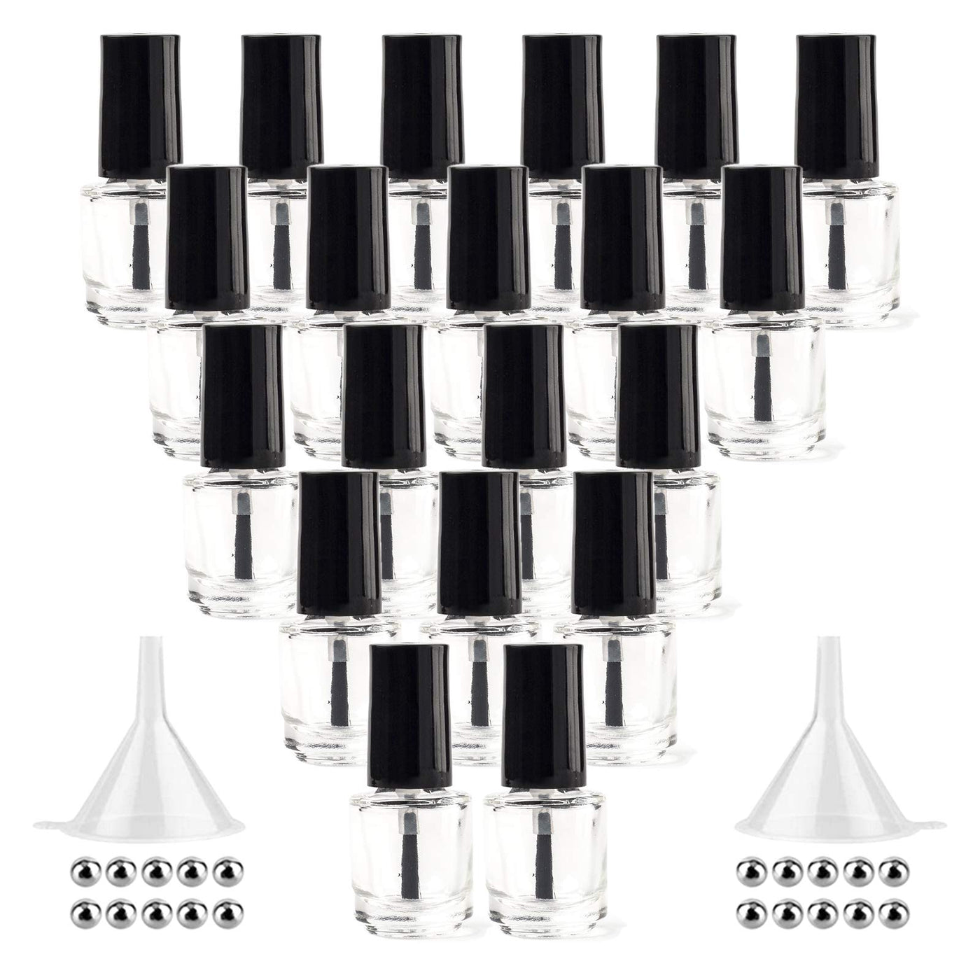 - Q: Do the bottles come with any accessories? A: Yes, the package includes 20 empty glass bottles, 20 mixing balls, and 2 funnels.