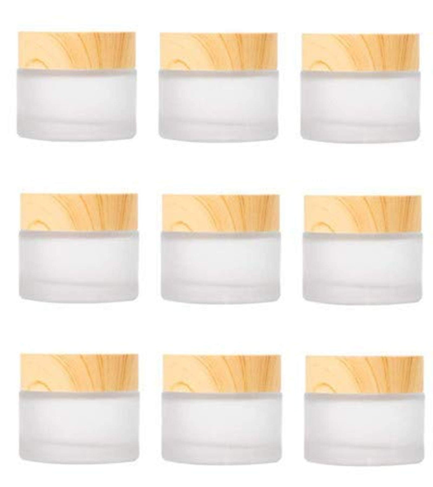 Healthcom 10 Packs 15Ml/15G Empty Sample Jars Frosted Glass Cream Jar Bottle With Wood Grain Lid Cosmetic Containers Glass Cream
