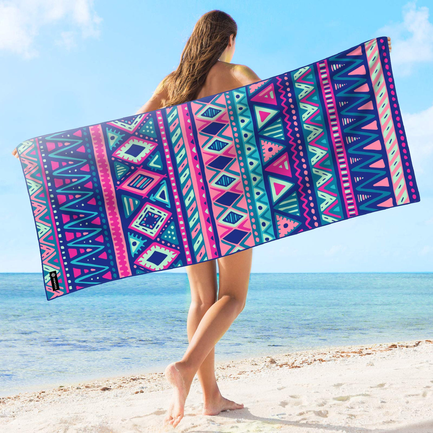 Hiwoss Microfiber Beach Towels Oversized 71''X31'', Soft Touch Ultra-Absorbent Quick Dry Sand Free Large Pool Towels With Mesh B