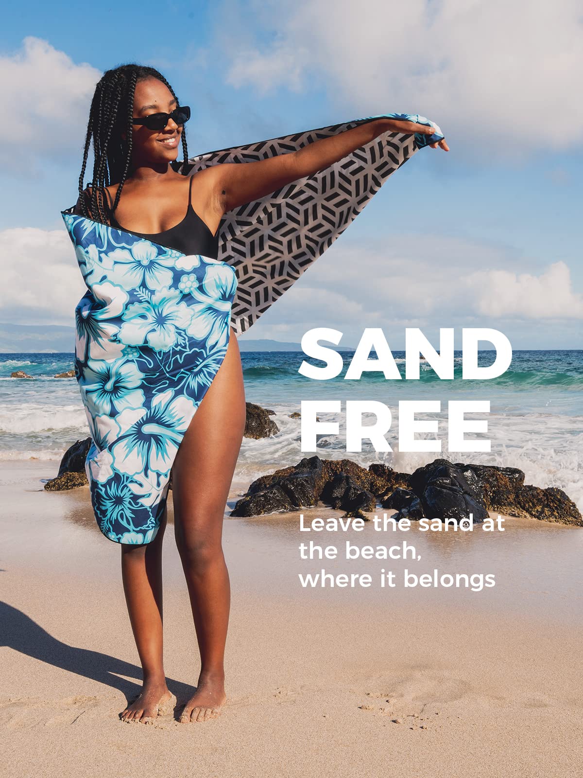 • Q: What makes this towel sand-free? A: The low-pile design of the microfiber material prevents sand from sticking, allowing you to easily shake off any sand before heading home.