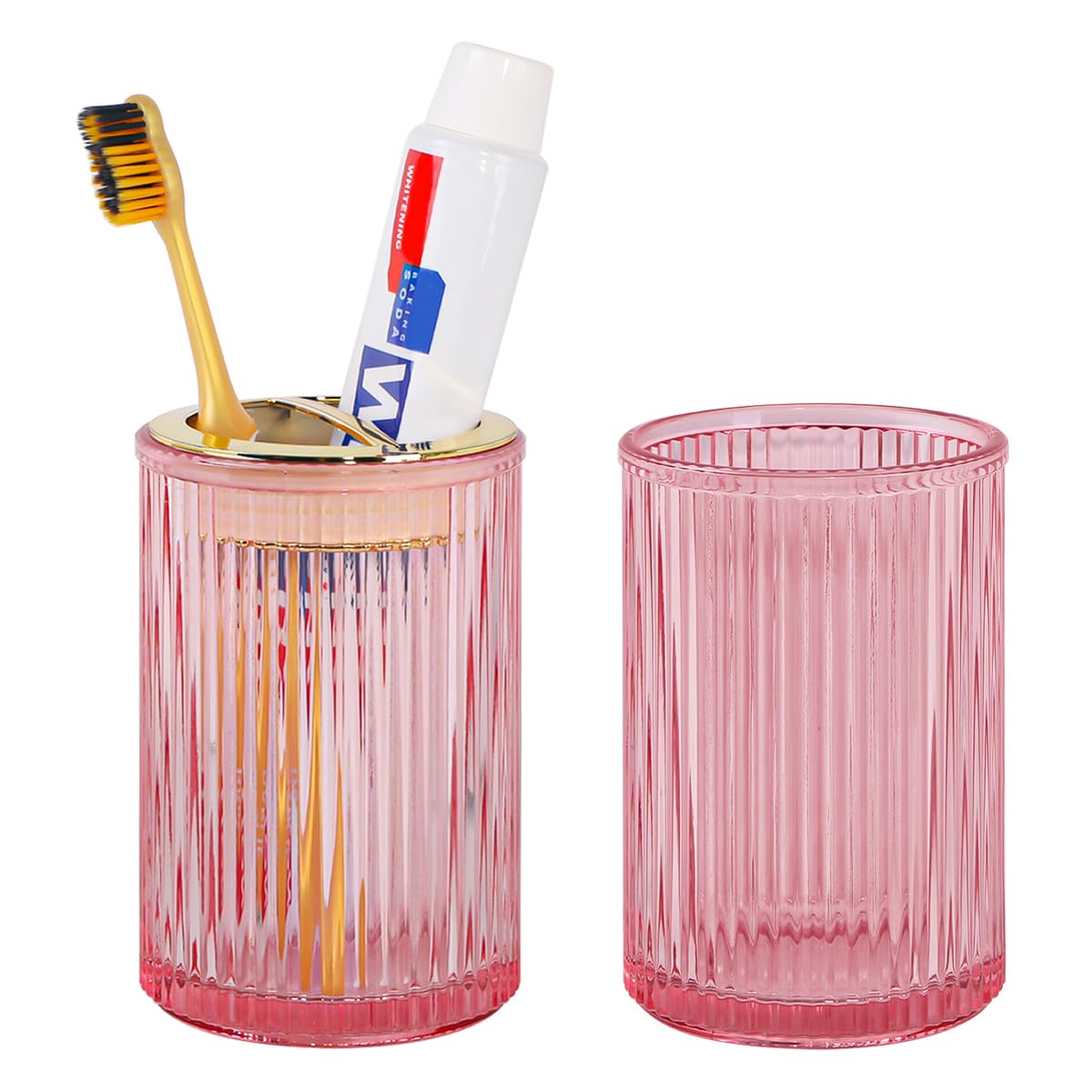 Tonxus Pink Toothbrush Holders for Bathrooms, 2pcs Glass Toothbrush Holder, 12oz Gold Bathroom Tumbler Cup and Mouthwash Cup, To