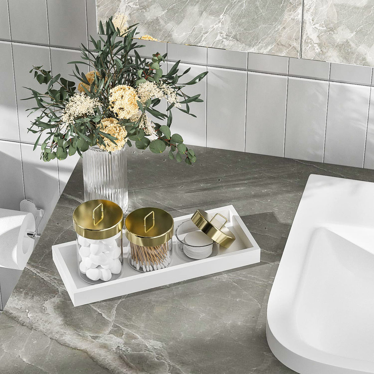 - Q: Can this tray be used outside of the bathroom? A: Absolutely! While it's designed for bathroom use, it can also be used in other areas such as your bedroom, kitchen, or living room for decorative purposes.