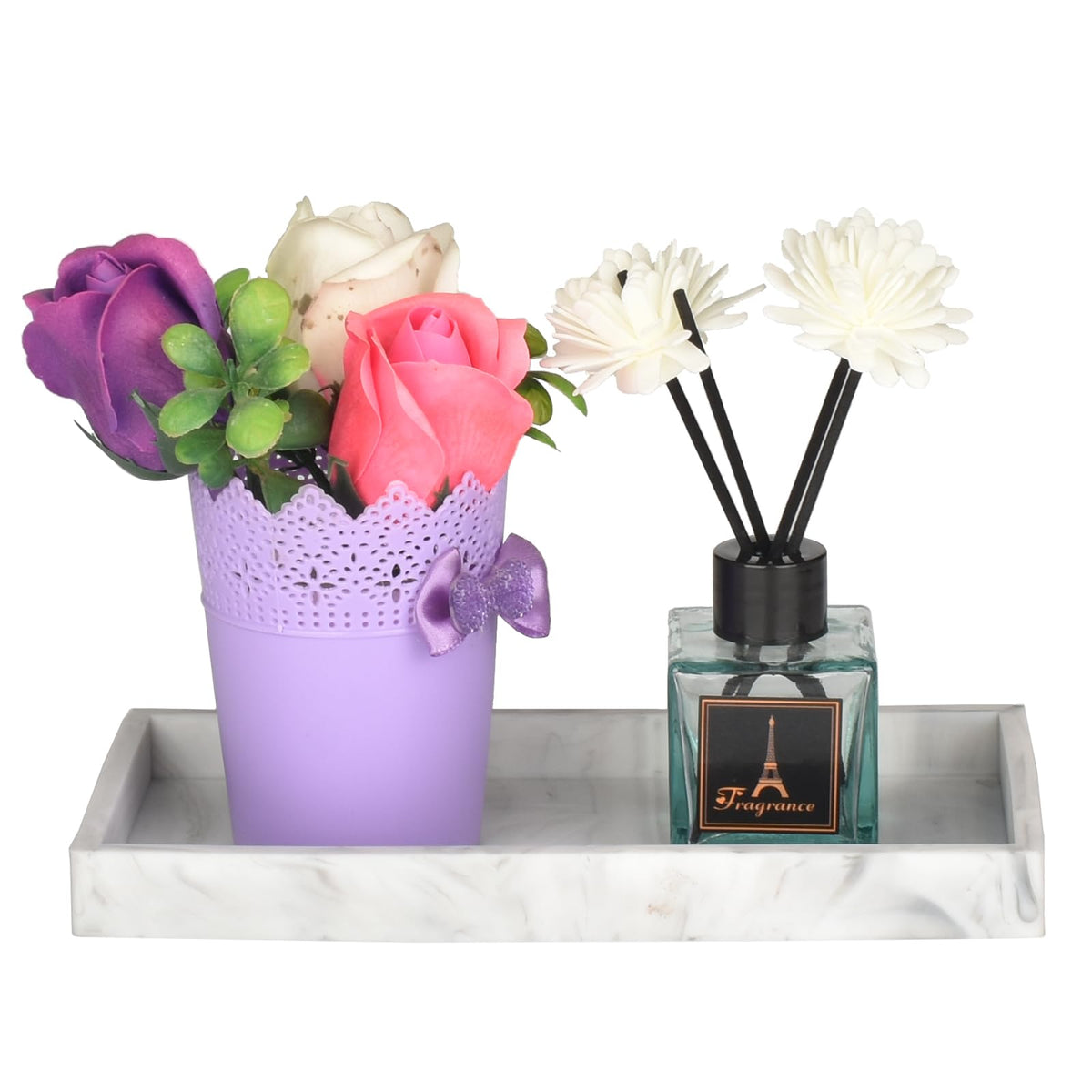 - Q: Does the tray come in different colors or designs? A: This specific tray features a marble white design; however, availability of other colors may vary.