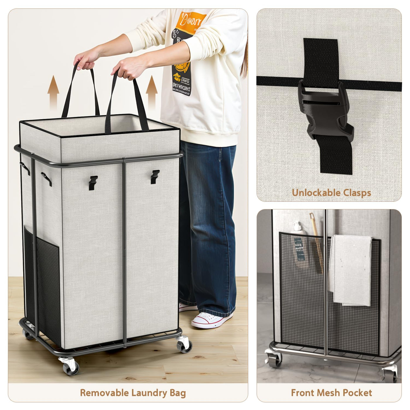 - Q: Is the laundry bag removable? A: Yes, the laundry bag is removable and securely attaches to the frame with clasps, making it easy to transport to different areas like the bedroom or laundry room.