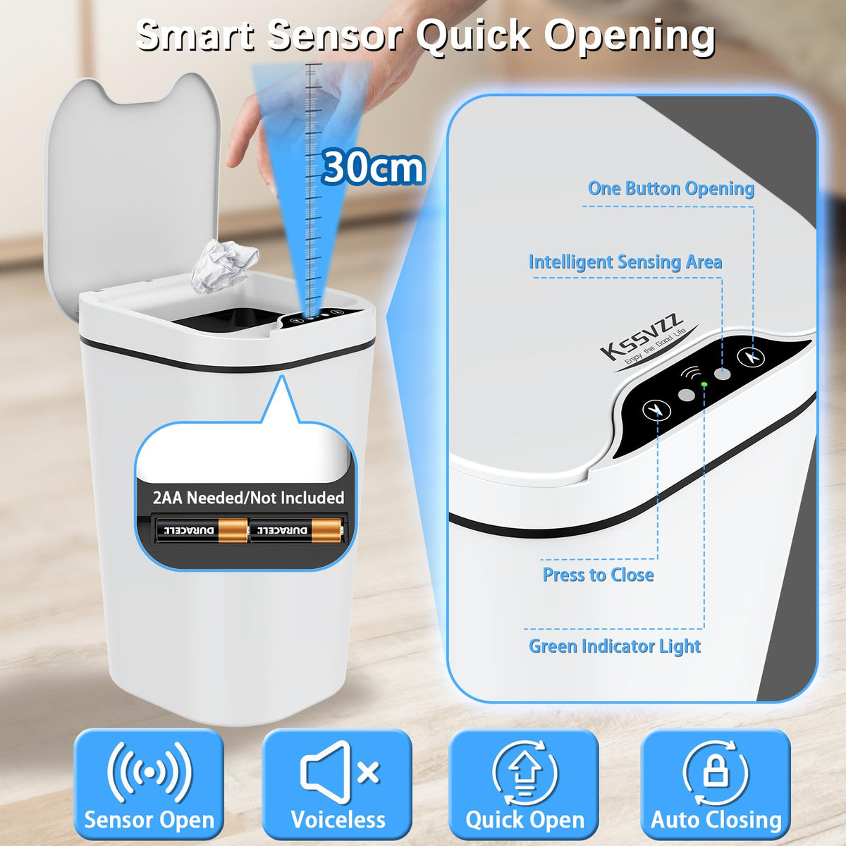 2 Pack Automatic Small Bathroom Trash Can With Lid - 2.5 Gallon Touchless Electric Garbage Can, Motion Sensor Smart Trash Bin, S