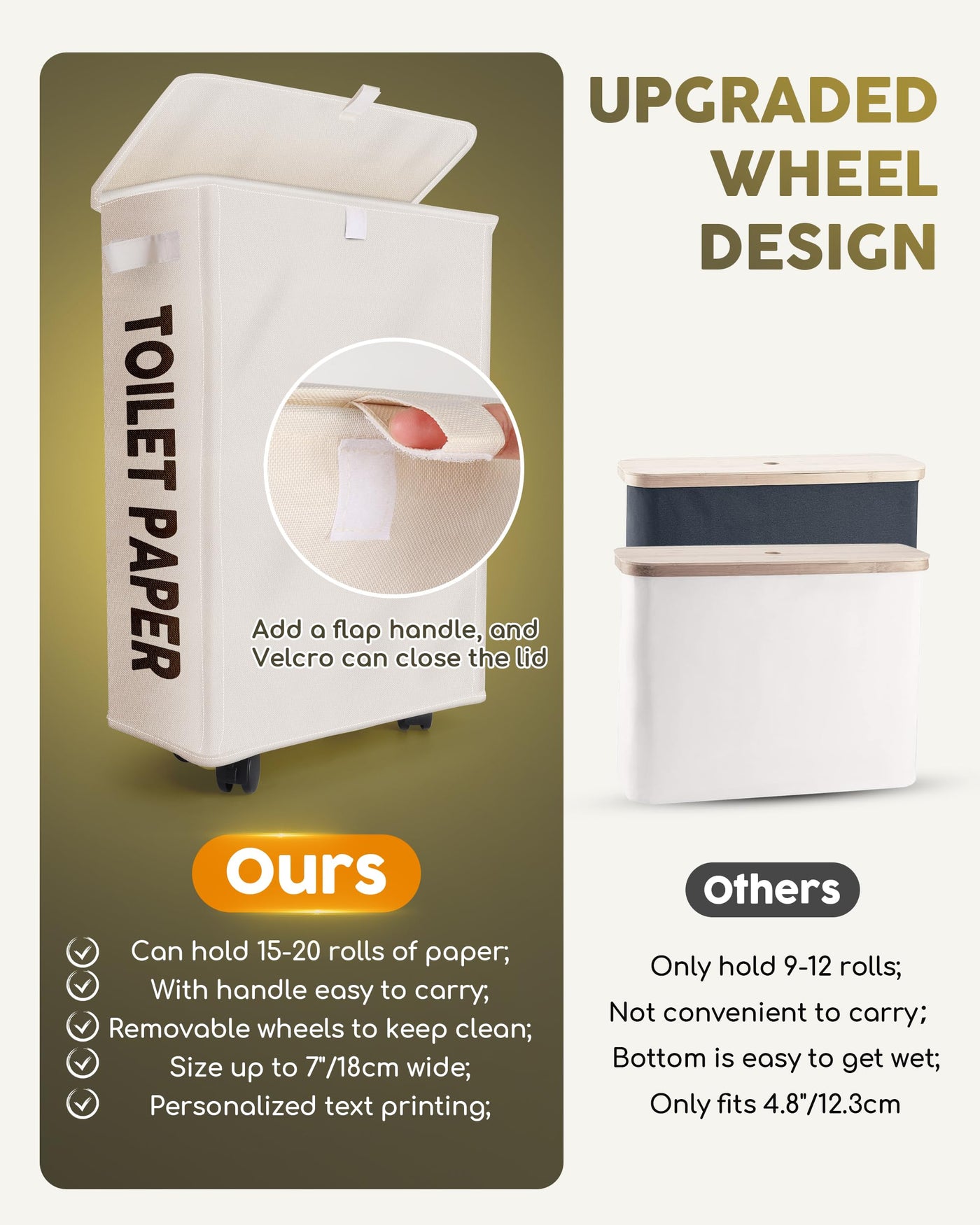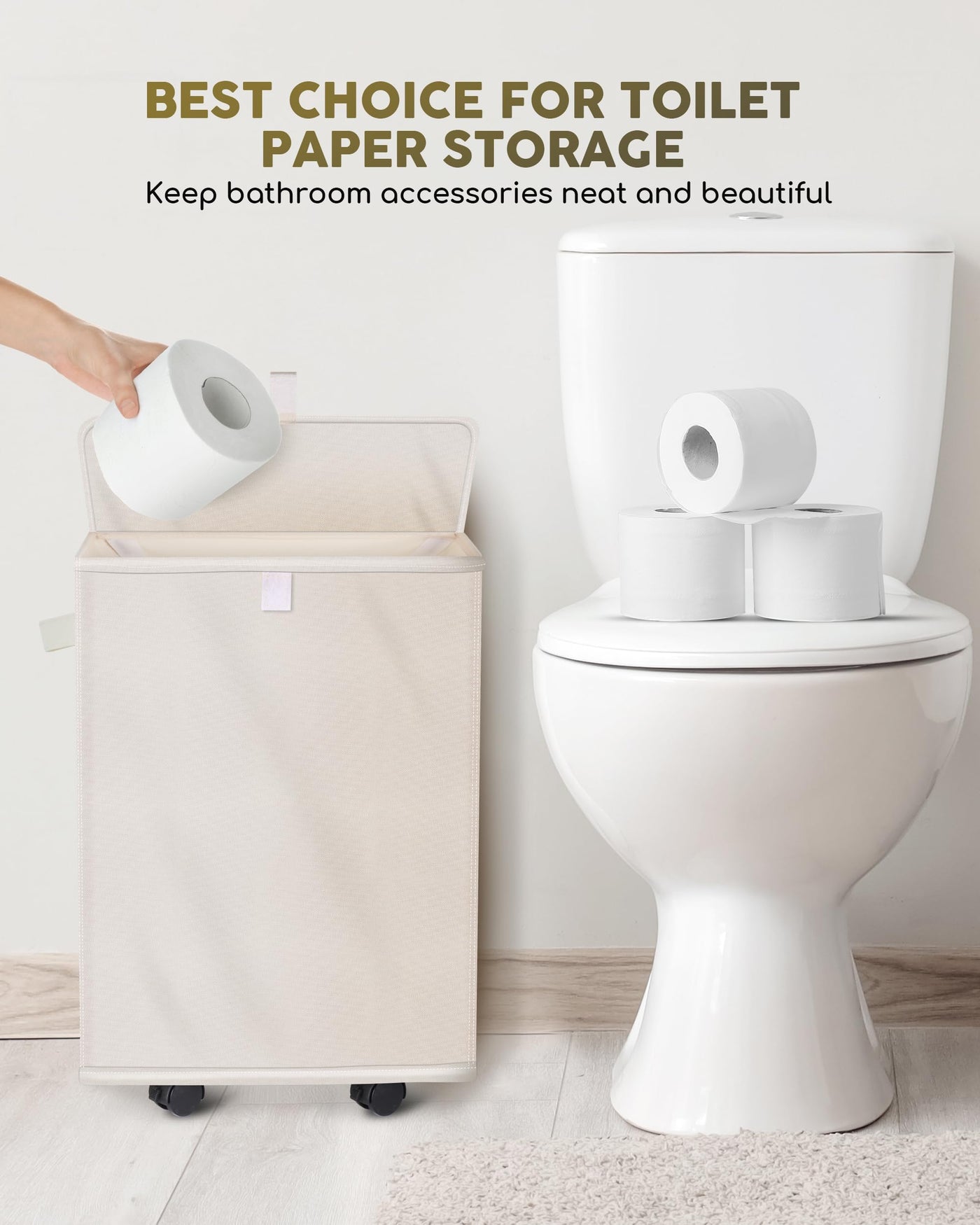 34 L Toilet Paper Organizer Basket, Toilet Paper Storage Can 20 Regular Rolls Or 15 Mega Rolls, Paper Basket With Lid And Handle