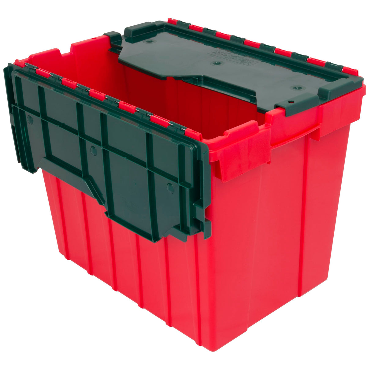 Akro-Mils 66497Rdgrn 18 Gallon Plastic Stackable Storage Keepbox Tote Container With Hinged Attached Lid, 21-Inch L X 15-Inch W