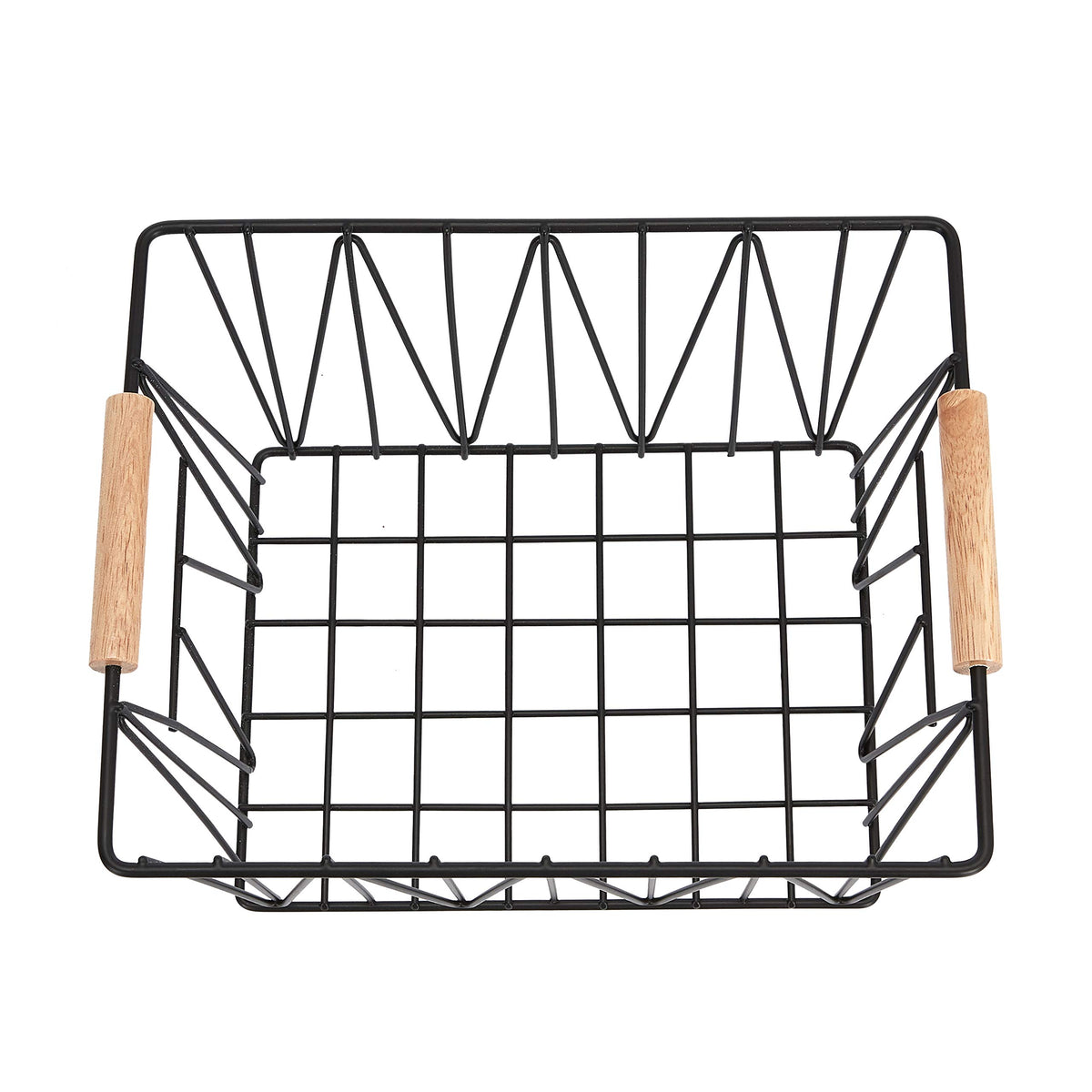 Amazon Basics Rectangular Wire Storage Baskets, Set Of 3, Standard, Black