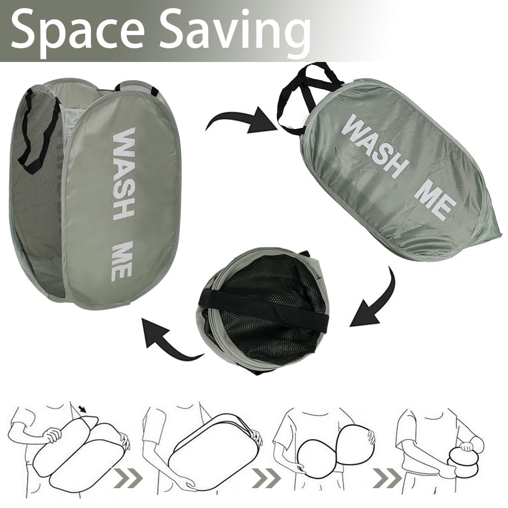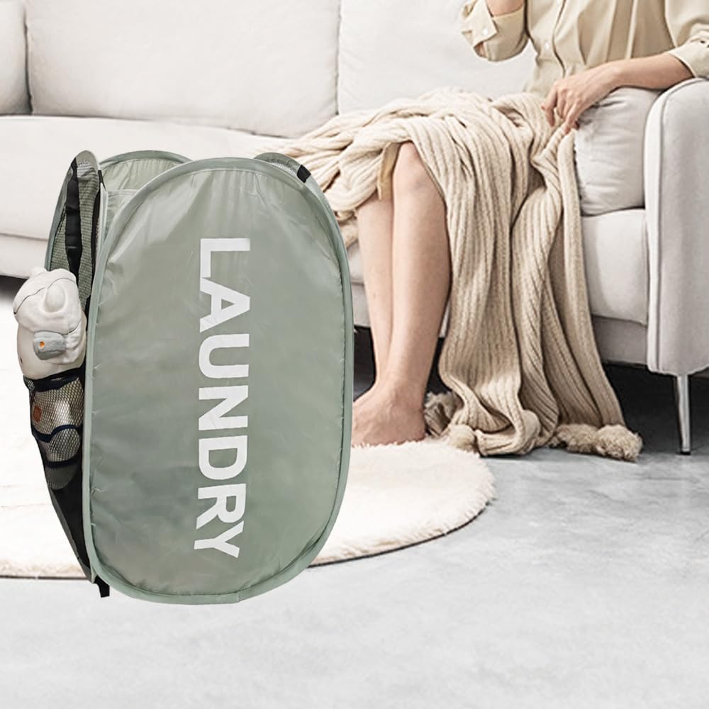 Aplter Mesh Laundry Hamper Pop Up Laundry Hamper Collapsible Laundry Basket With Carry Handles, Large Side Pocket For Kids Room,
