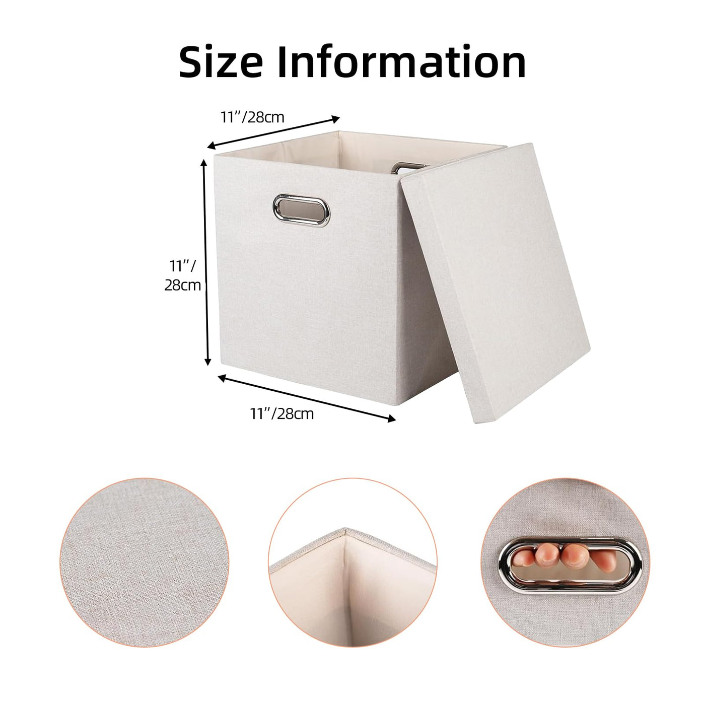 Arcaguru Storage Bins With Lids, Collapsible Linen Fabric Boxes Organizer Containers With Lid Foldable Storage Box Basket For Cl