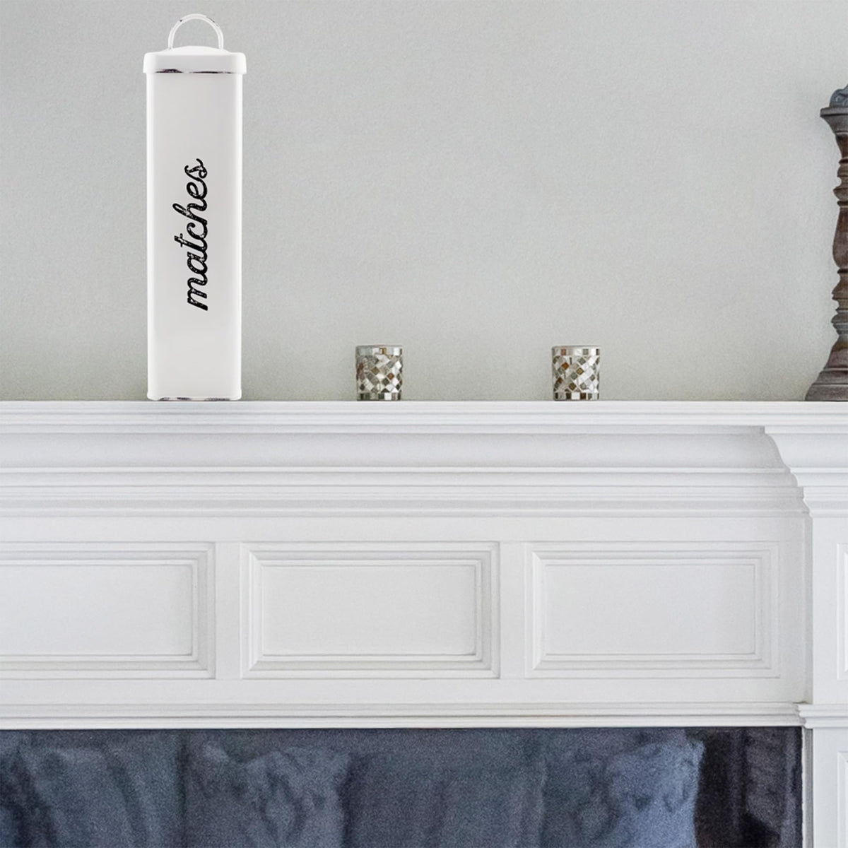 Auldhome Design Enamelware Fireplace Matches Holder (White), Farmhouse Storage Container For Long Safety Matches