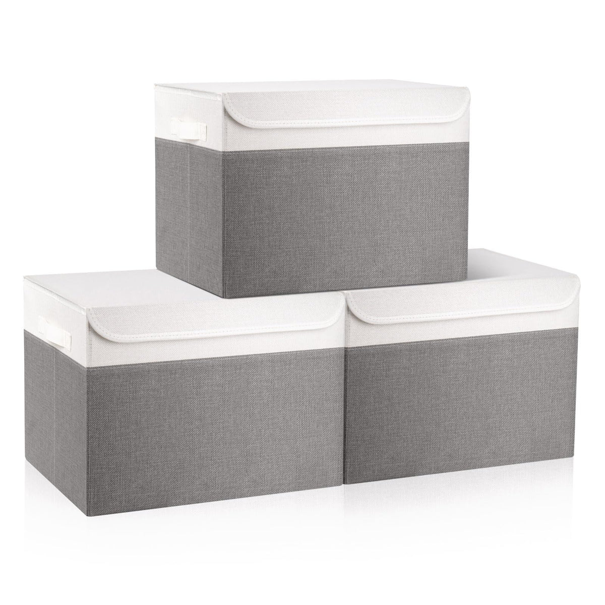 Bagnizer Large 17'' 42 Quarts Collapsible Stackable Storage Bins With Lids [3-Pack] Foldable Fabric Linen Storage Boxes Cube, Cl