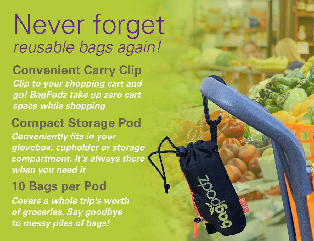- Q: Do the BagPodz bags have any additional features? A: Yes, the bags feature a carry clip, allowing you to attach them easily to your shopping cart or bag for convenience.