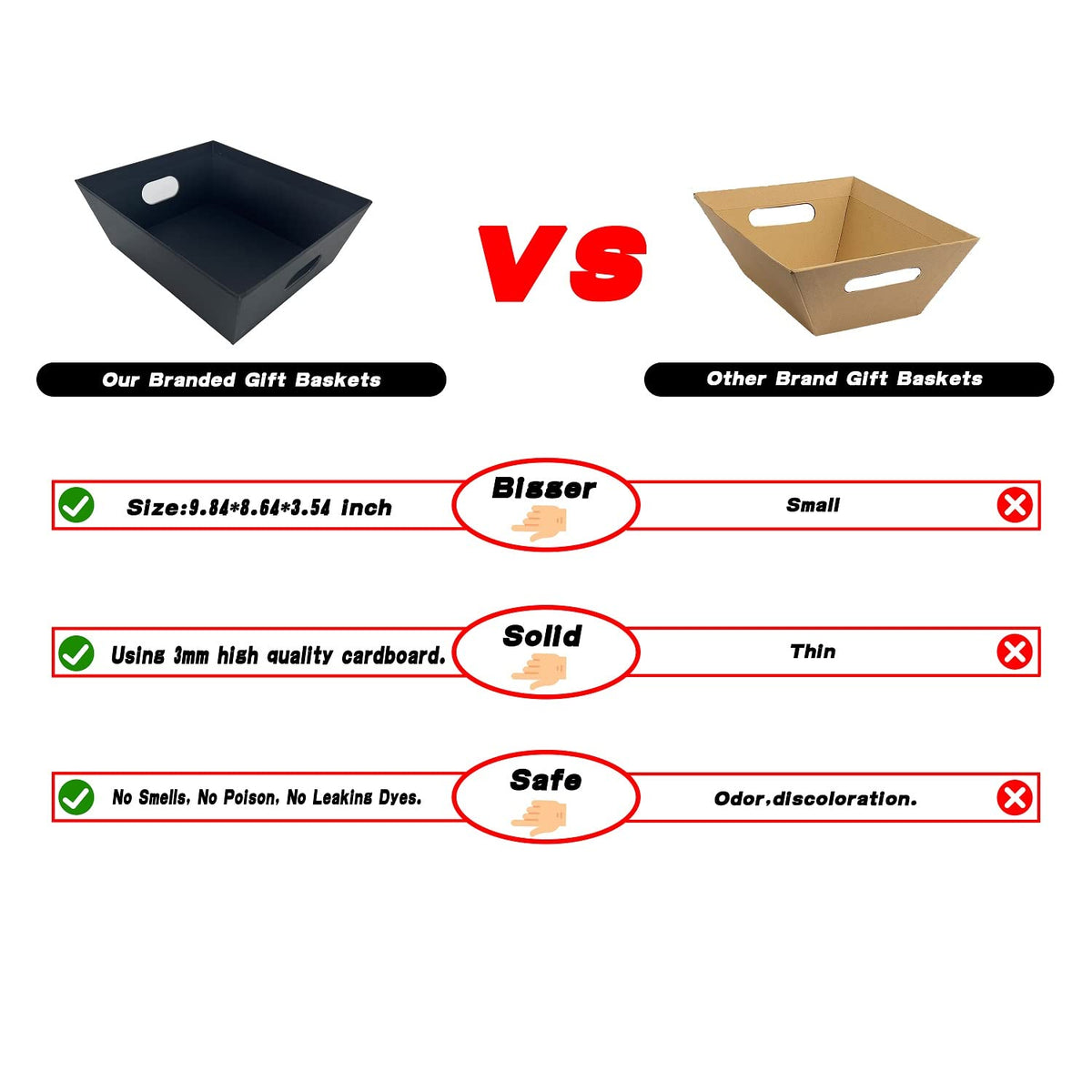 Baskets For Gifts Empty, 5 Pk Black Empty Gift Baskets To Fill, Sturdy Cardboard Tray With Handles, Large Gift Baskets Empty Bul