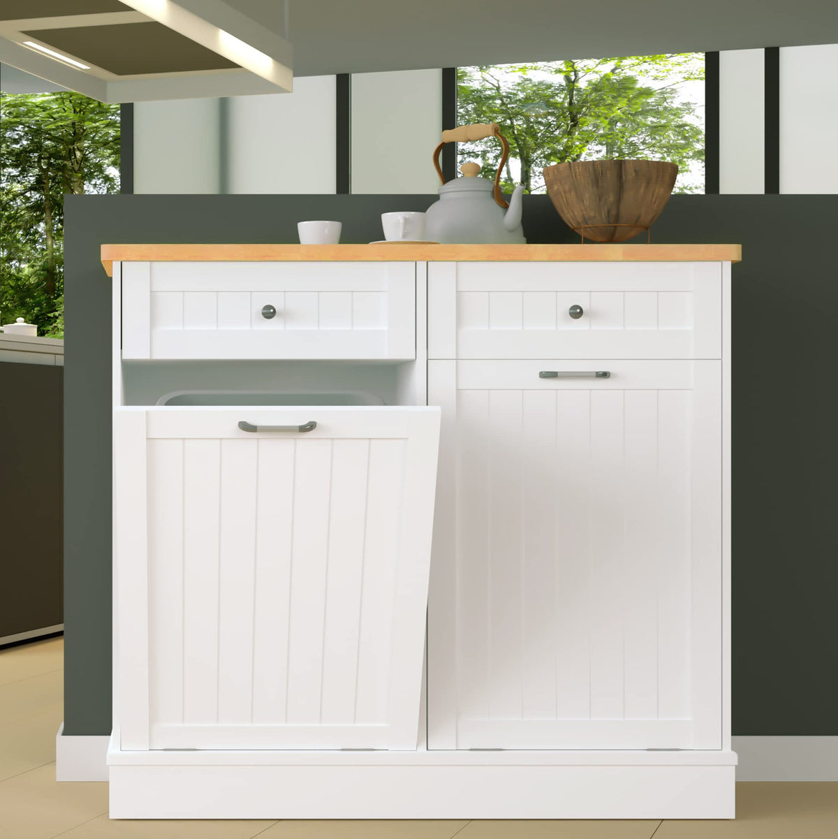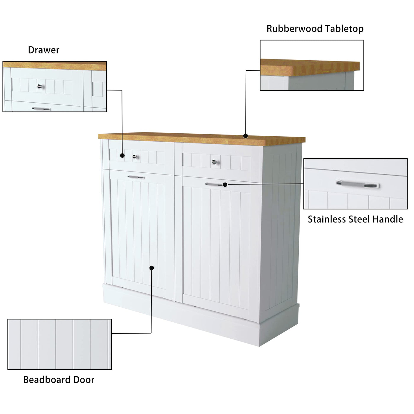 Betterhood Double Tilt Out Trash Cabinet 20 Gallon, Trash Can Cabinet For Kitchen With Drewers & Solid Wooden Tabletop Free Stan