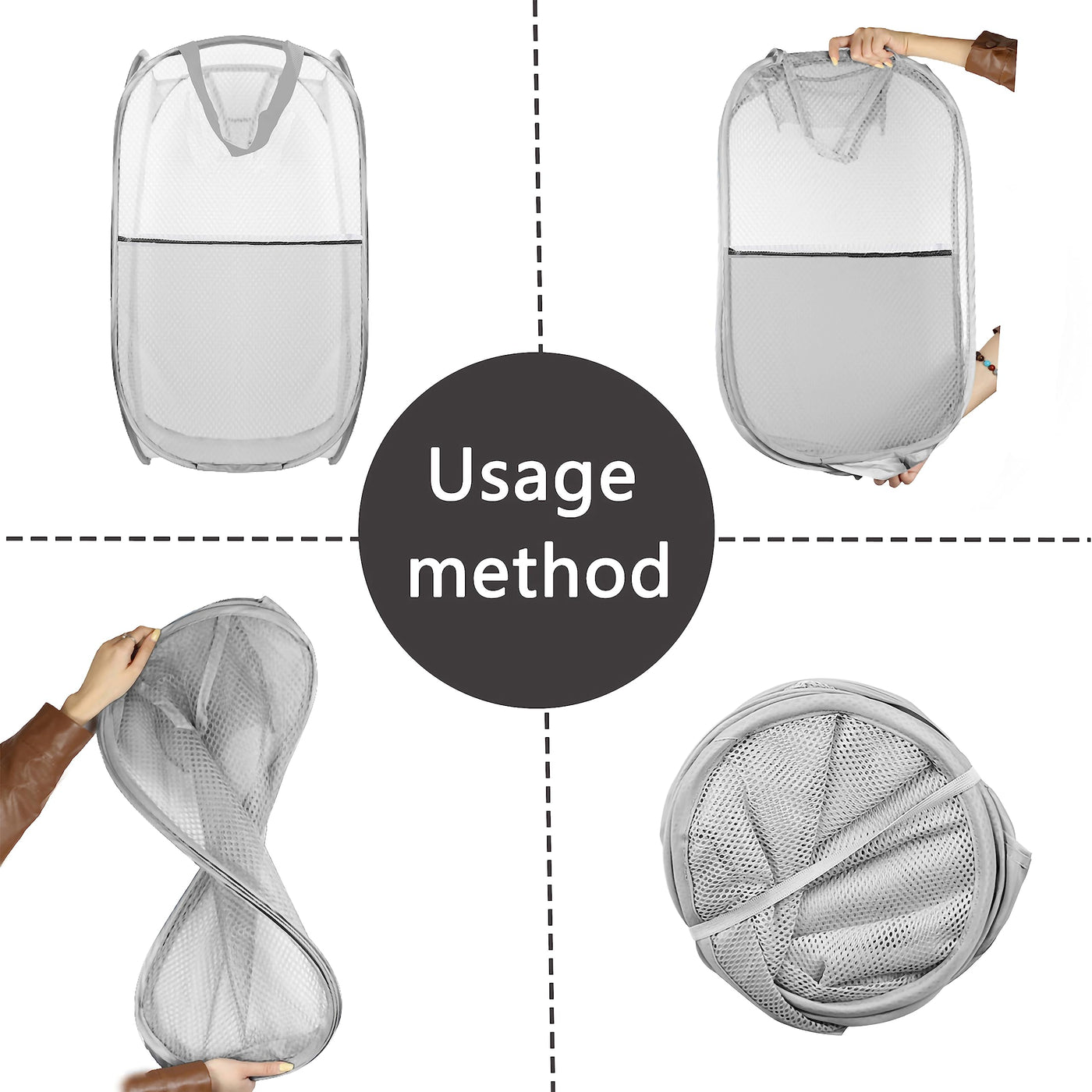 Buyongwant Collapsible Pop Up Laundry Hamper, Mesh Foldable Laundry Basket, Extra Large - 28'' X 16'' X 16'' (Grey)