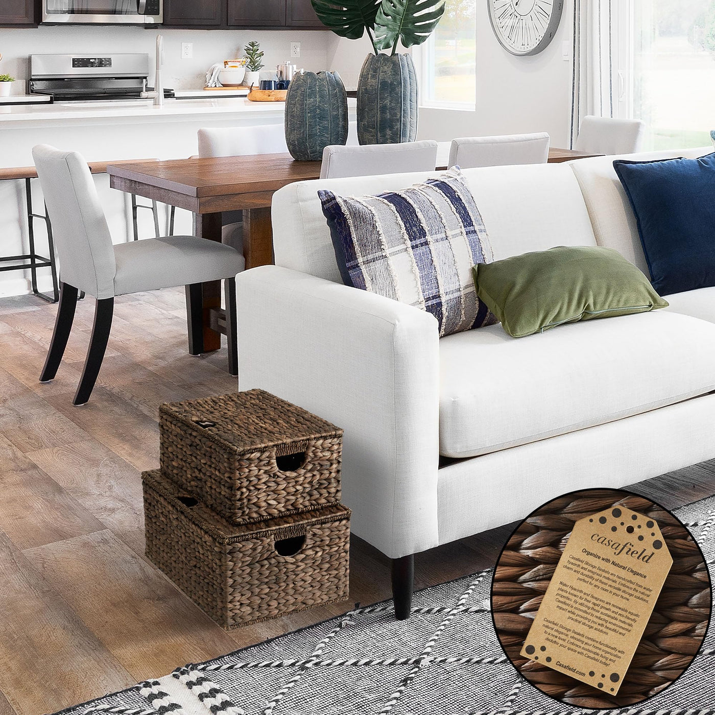 Casafield Set Of 2 Water Hyacinth Rectangular Storage Baskets With Lids (Medium/Large), Multipurpose Decorative Shelf Organizati
