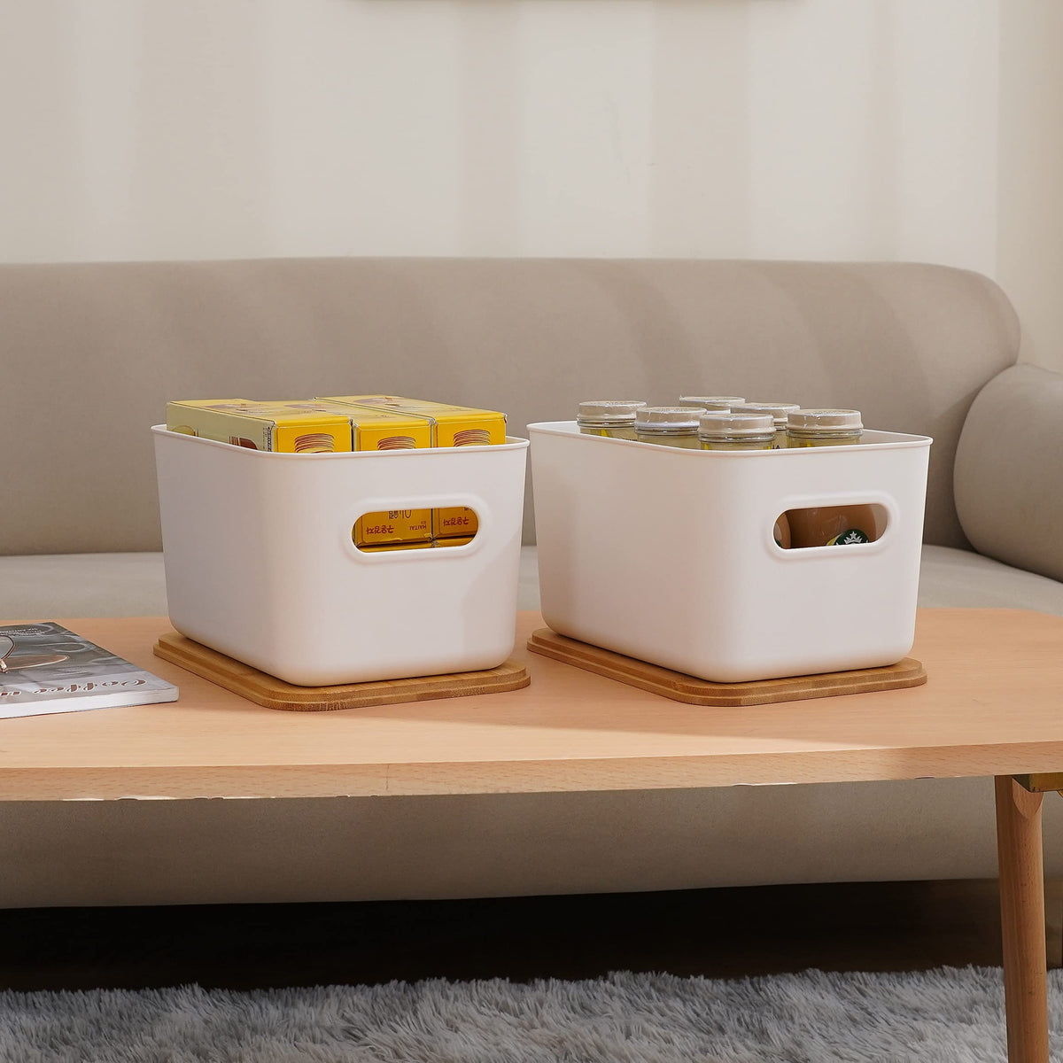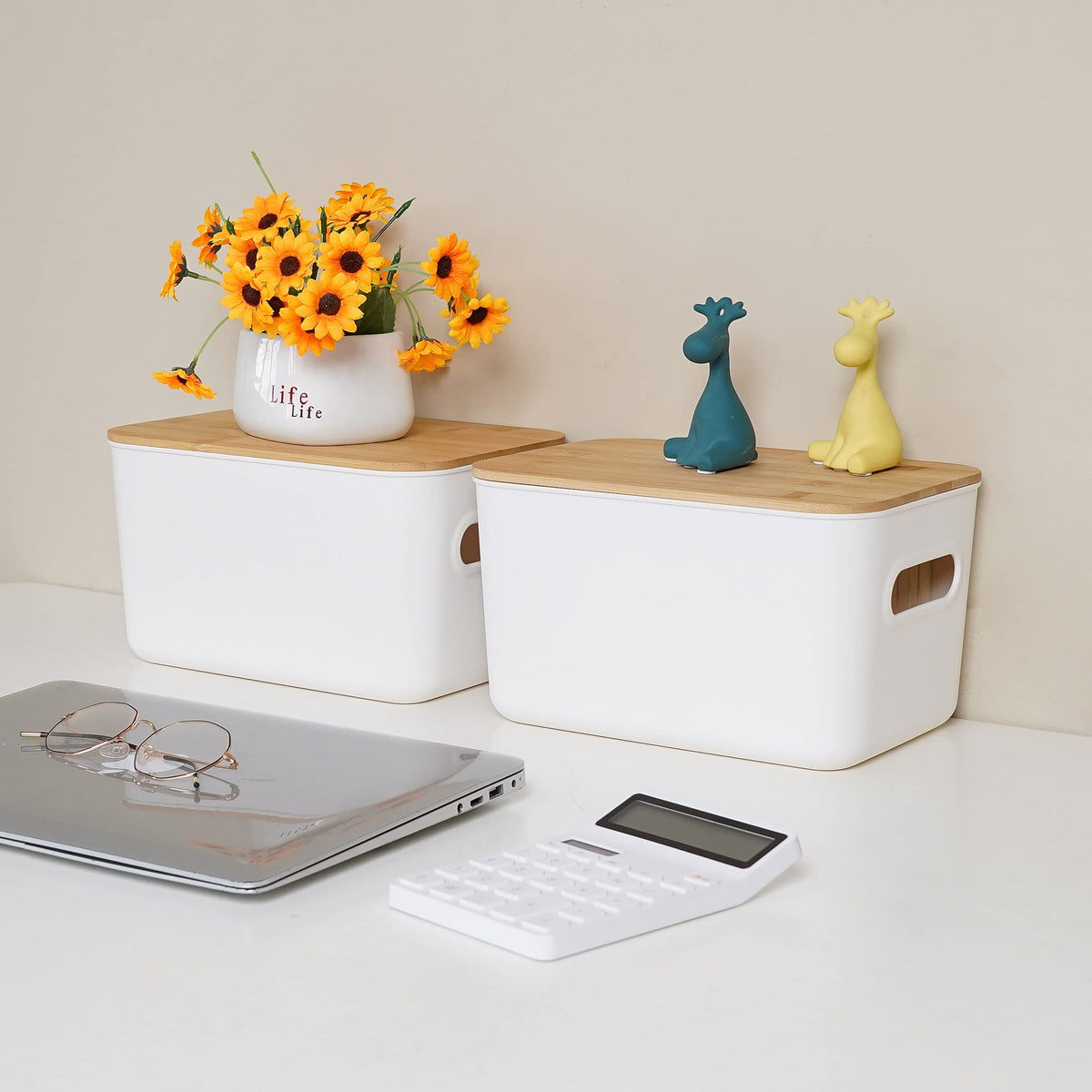 Citylife 2 Pcs Storage Bins With Bamboo Lids Plastic Storage Containers For Organizing Stackable Storage Box With Handle, 10.23
