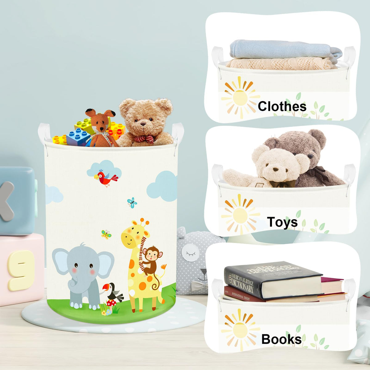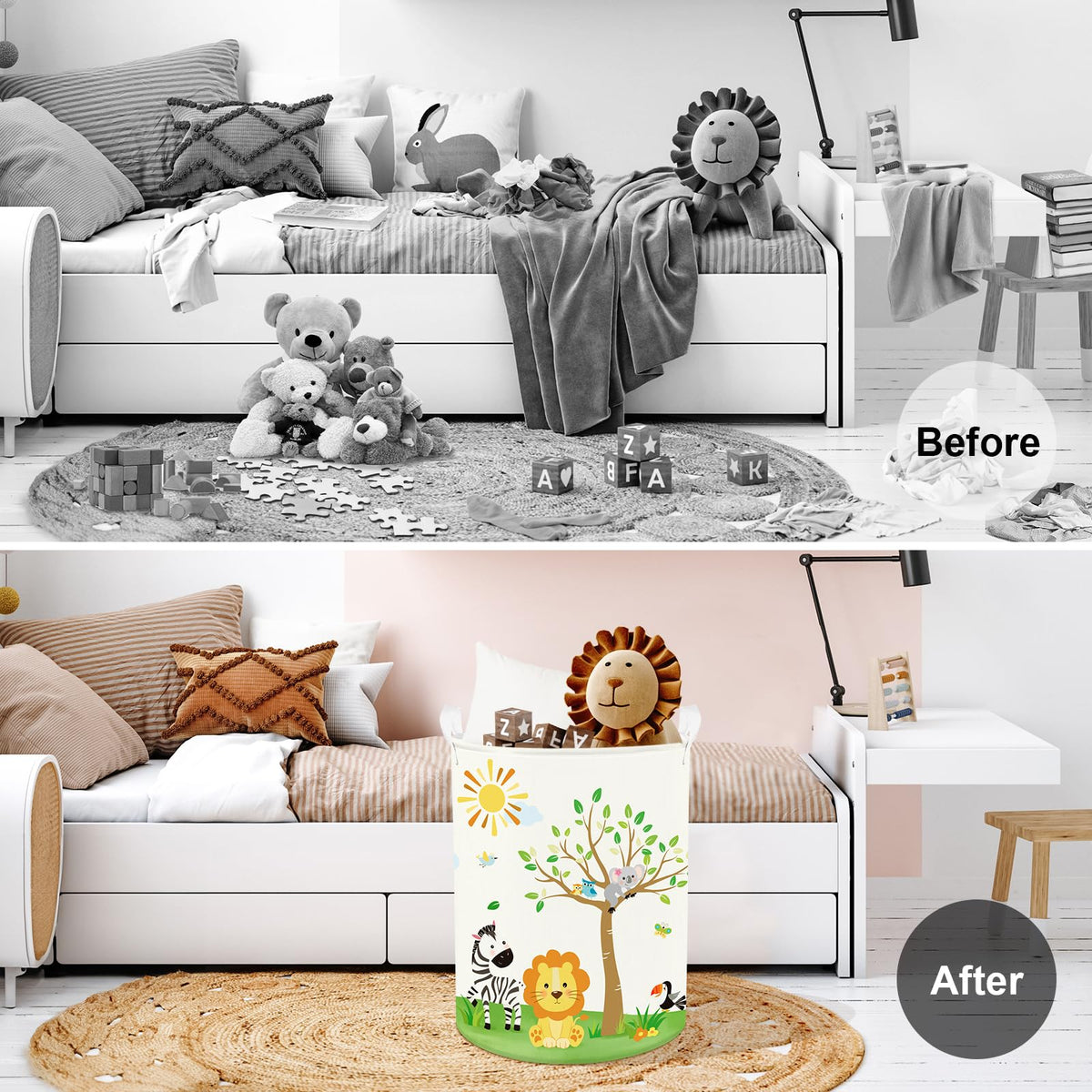 Clastyle 63L Large Jungle Animal Tree Kid Laundry Hamper With Handle Boy Girl Bedroom Bathroom Nursery Collapsible Clothes Toy S