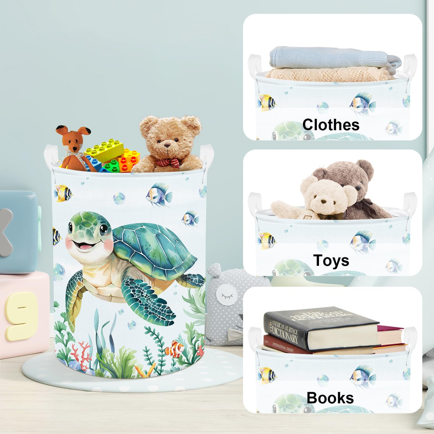 Clastyle Large Fish Sea Turtle Baby Basket Ocean Coral Seaweed Starfish Toy Book Shelf Basket Waterproof Pool Toy Beach Towel St