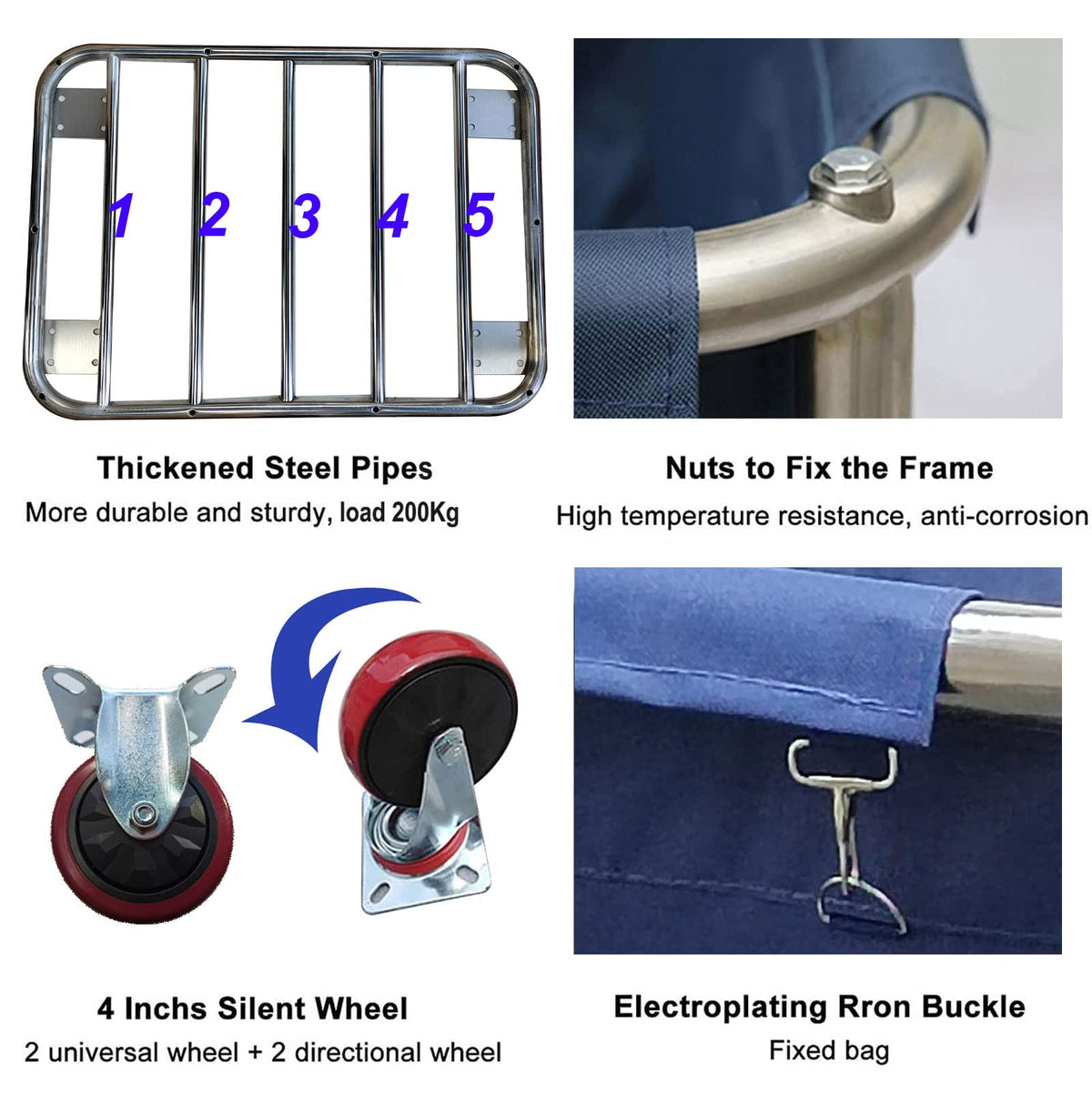 - Q: What materials are used in the construction of the laundry cart? A: The laundry cart is made from a stainless steel frame, Oxford fabric, and features a detachable waterproof canvas liner.