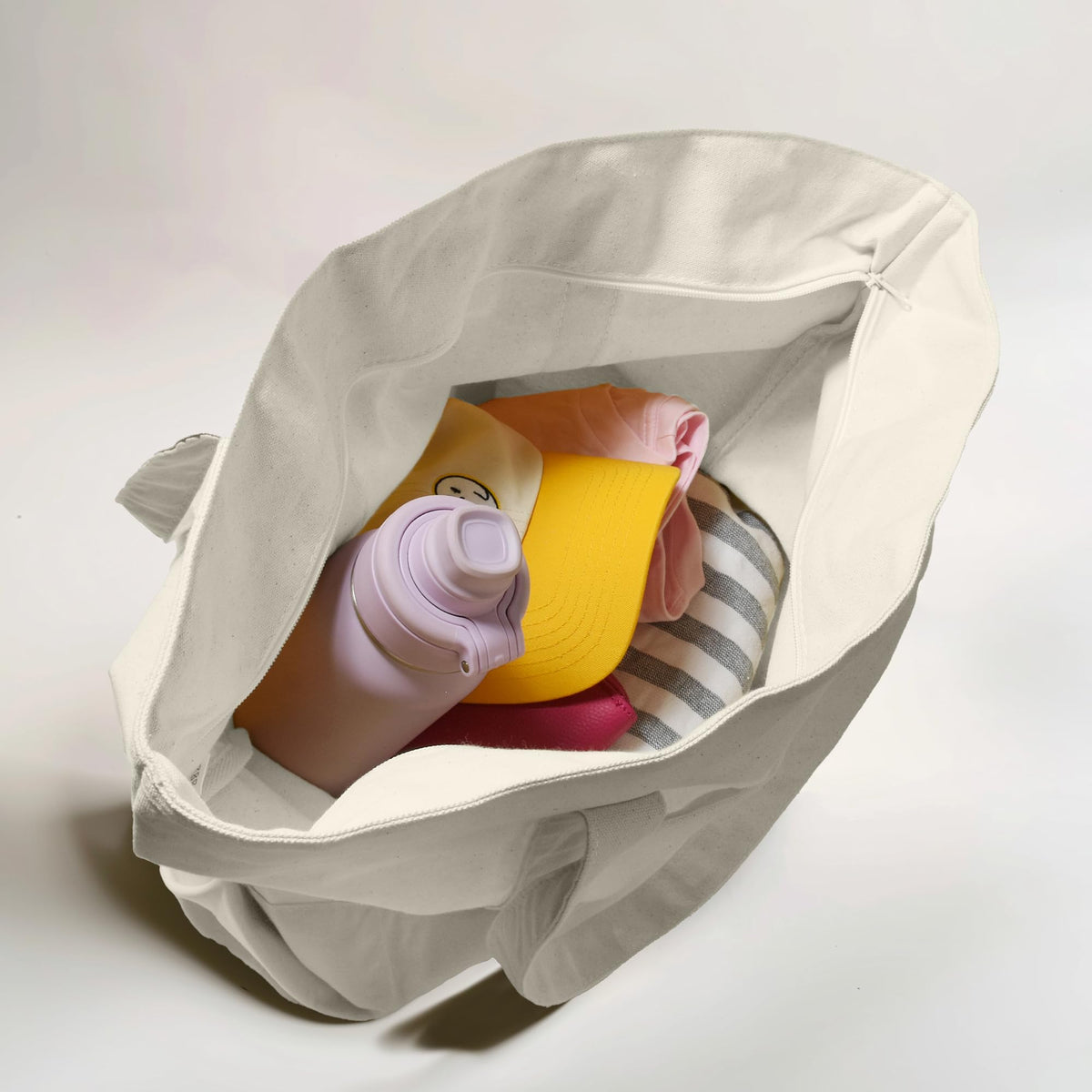 Dalix 22'' Large Cotton Canvas Zippered Shopping Tote Grocery Bag In Natural