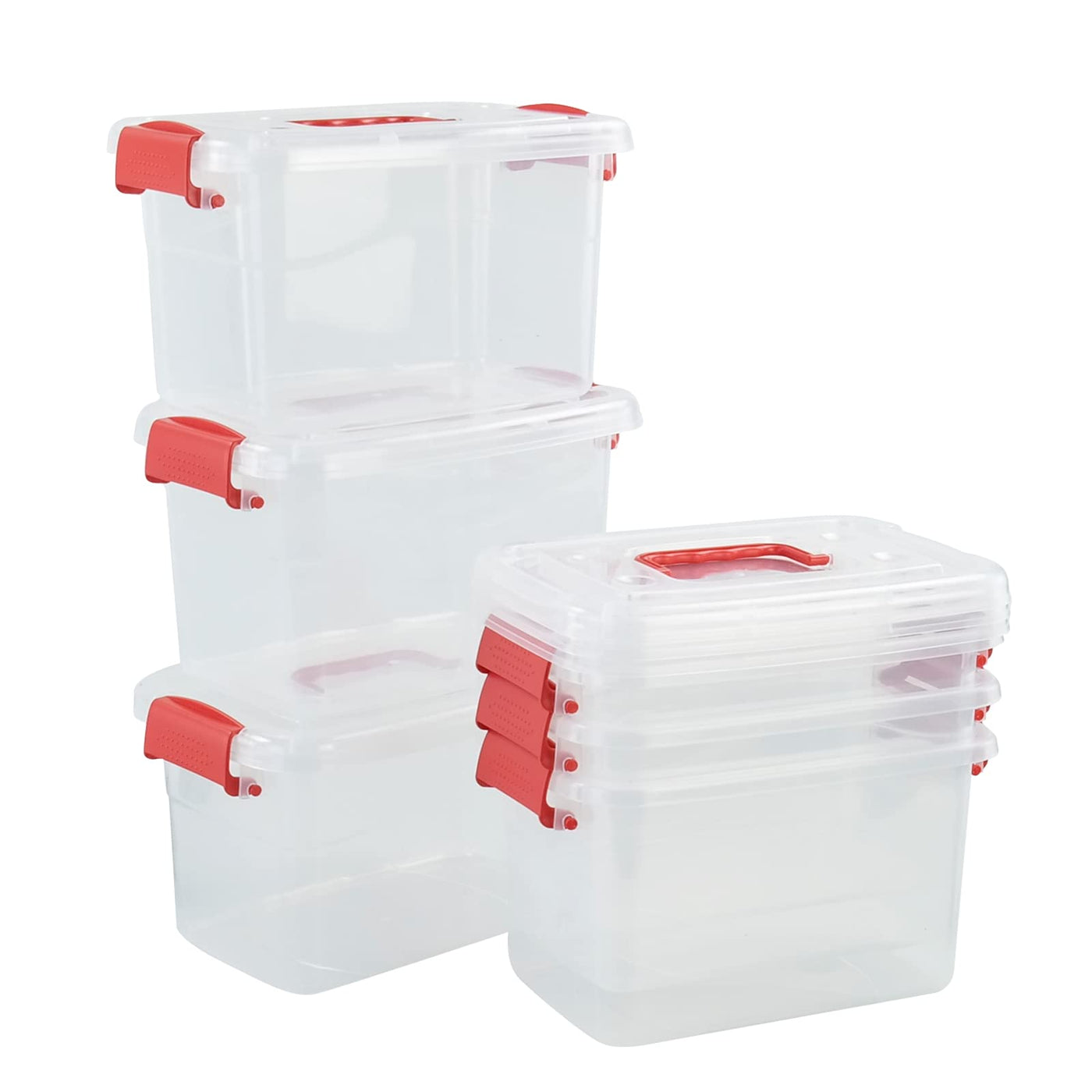 • Q: How many plastic storage boxes are included in a set? A: The set includes 6 plastic storage boxes with lids.
