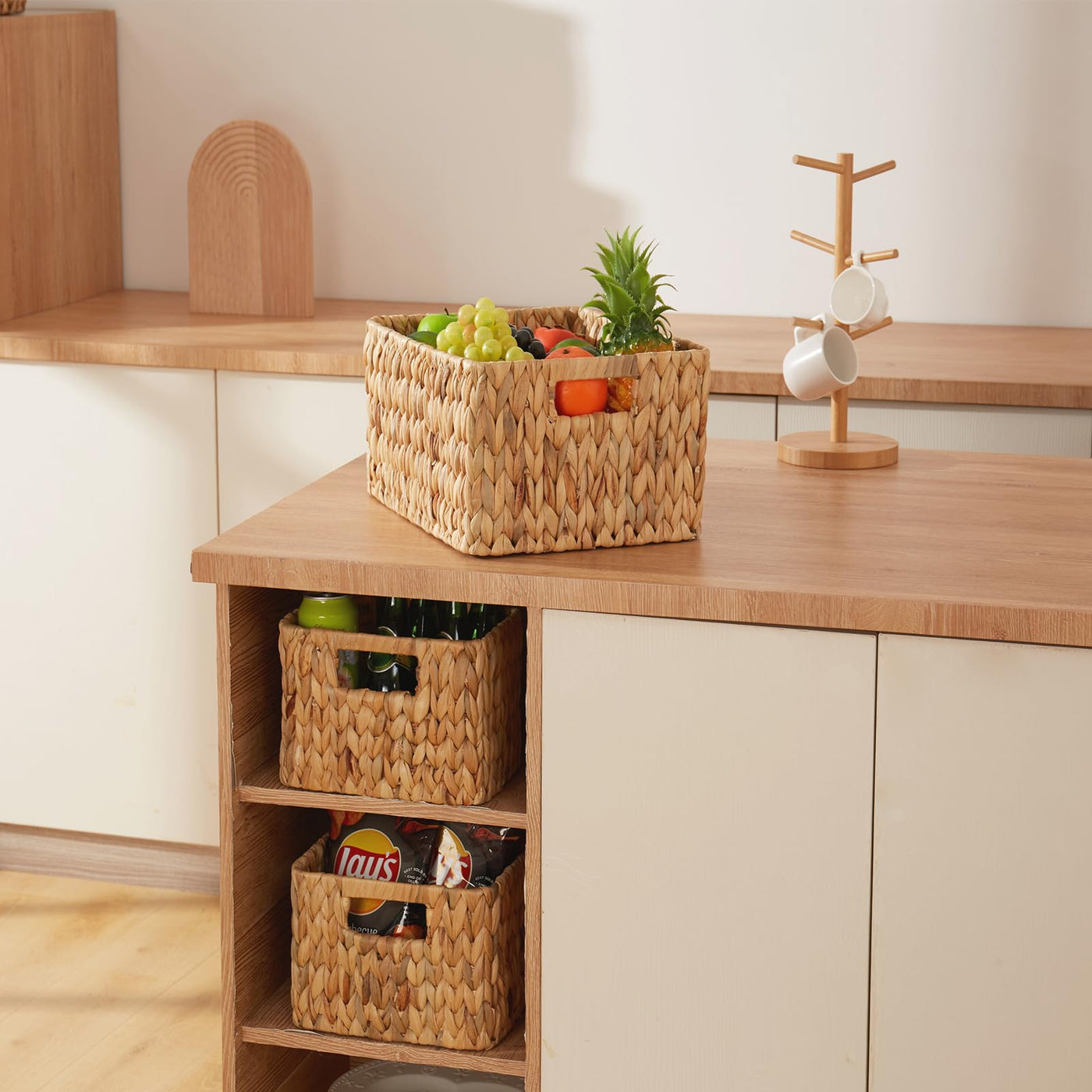 Elong Home Wicker Storage Basket, 3 Pack Hand-Knitted Wicker Baskets, Water Hyacinth Storage Baskets With Built-In Handles