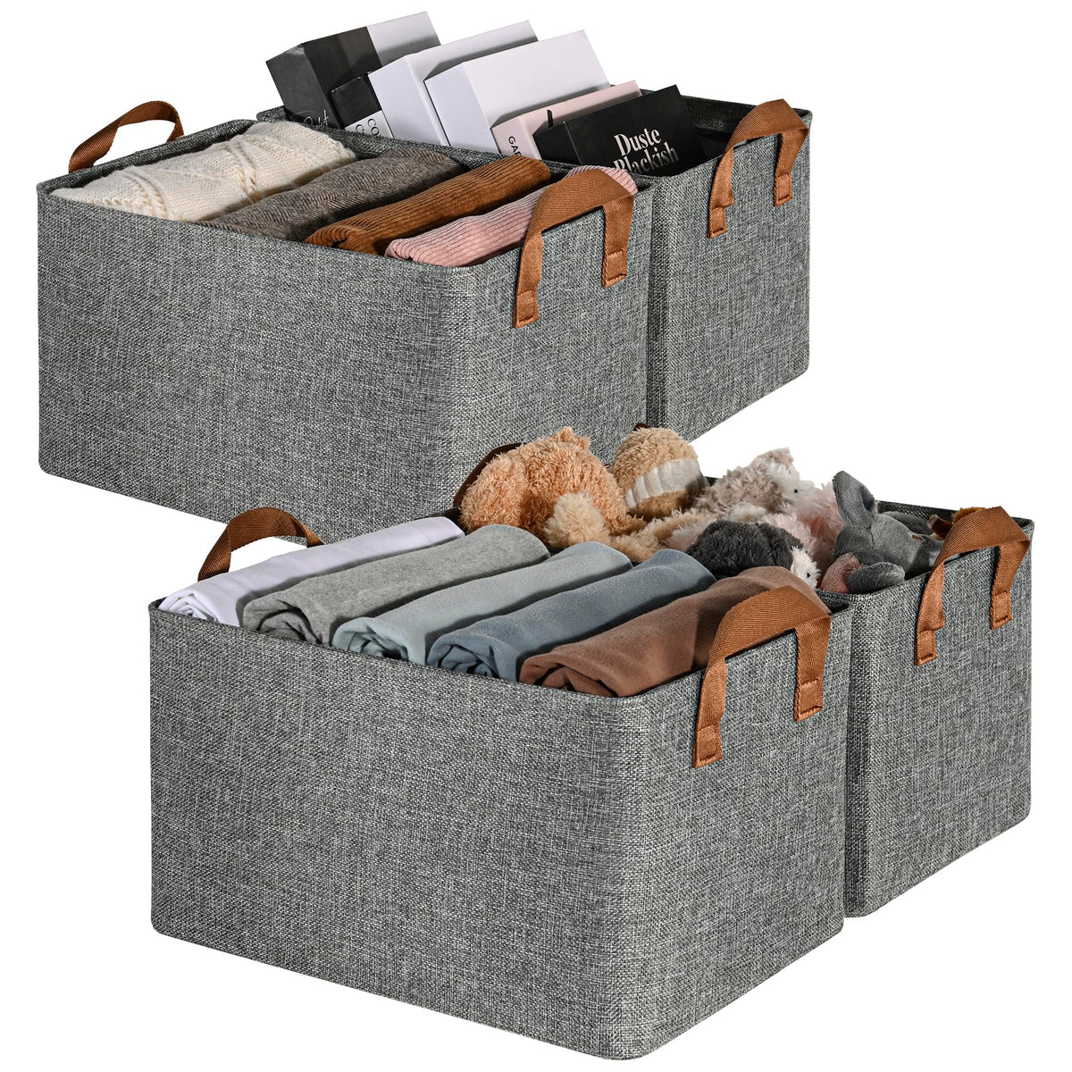 Granny Says Closet Storage Bins, Gray Storage Bins With Handles Metal Frame, Linen Closet Organizers And Storage Baskets Large,