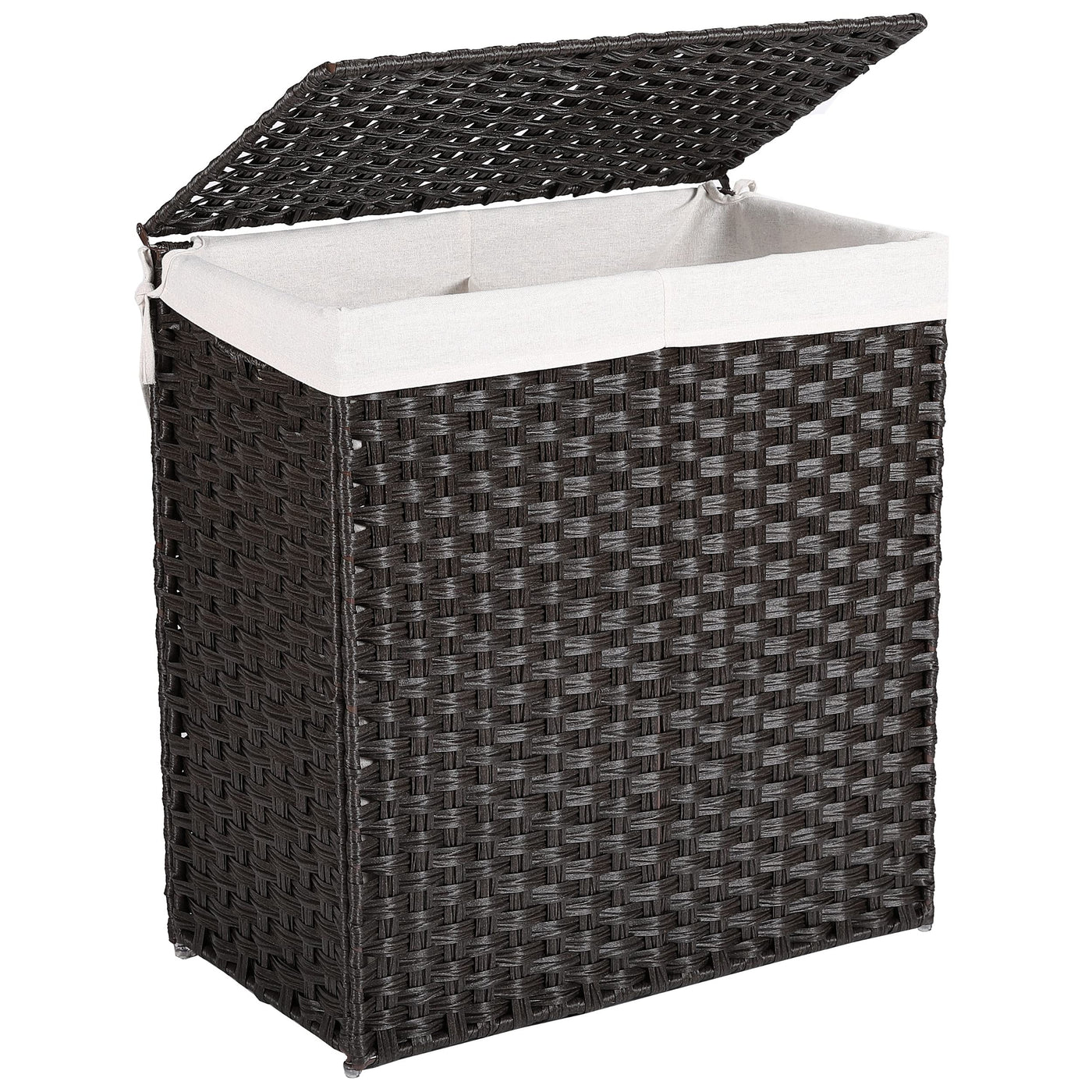 Hand Woven Divided Laundry Hamper With Lid | Double Sorter With Liner Bags | Large Collapsible Hampers | Foldable Bin | Syntheti