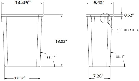 • Q: What are the dimensions of the waste container? A: The dimensions of the waste container are 18 inches in height, 9.5 inches in width, and 14.5 inches in depth.