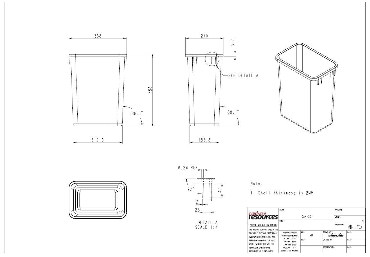 • Q: Can I use this container with a pull-out frame? A: Yes, this waste container can be used as a freestanding bin or with pull-out frames designed for Hardware Resources brand systems.