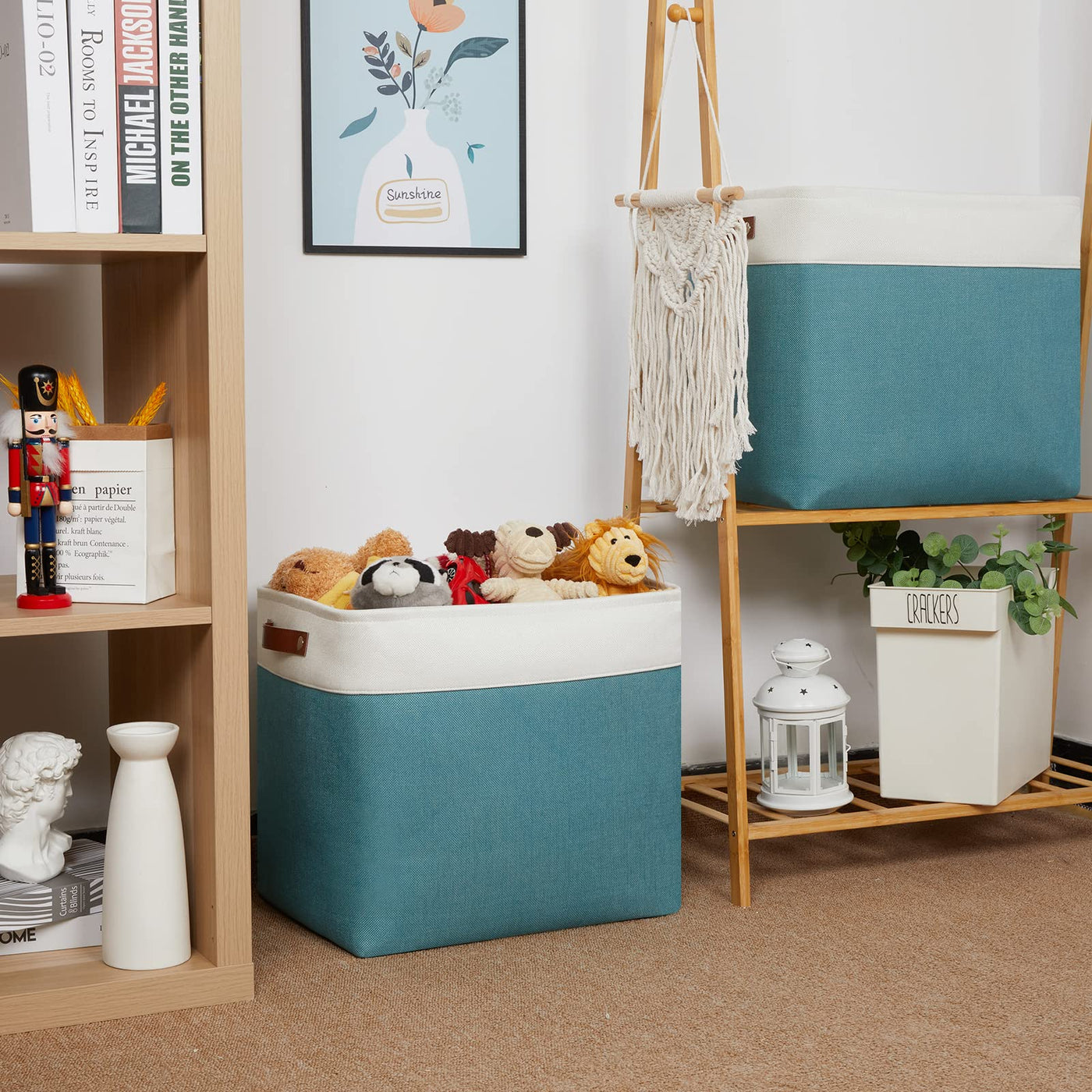 - Q: Do the baskets come in different colors? A: These baskets are currently available in a white and teal color combination.