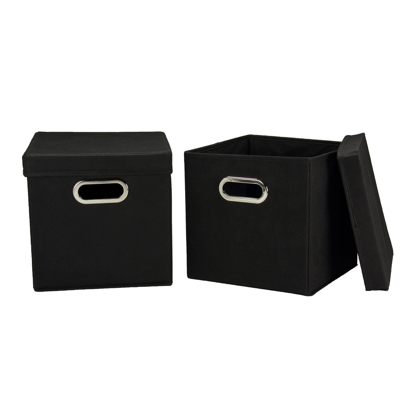Household Essentials 34-1 Decorative Storage Cube Set With Removable Lids | Black | 2-Pack