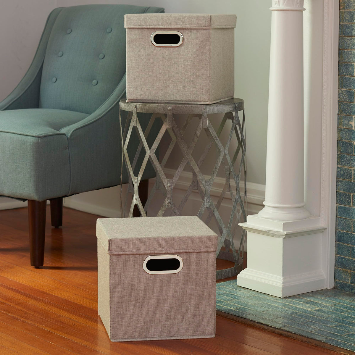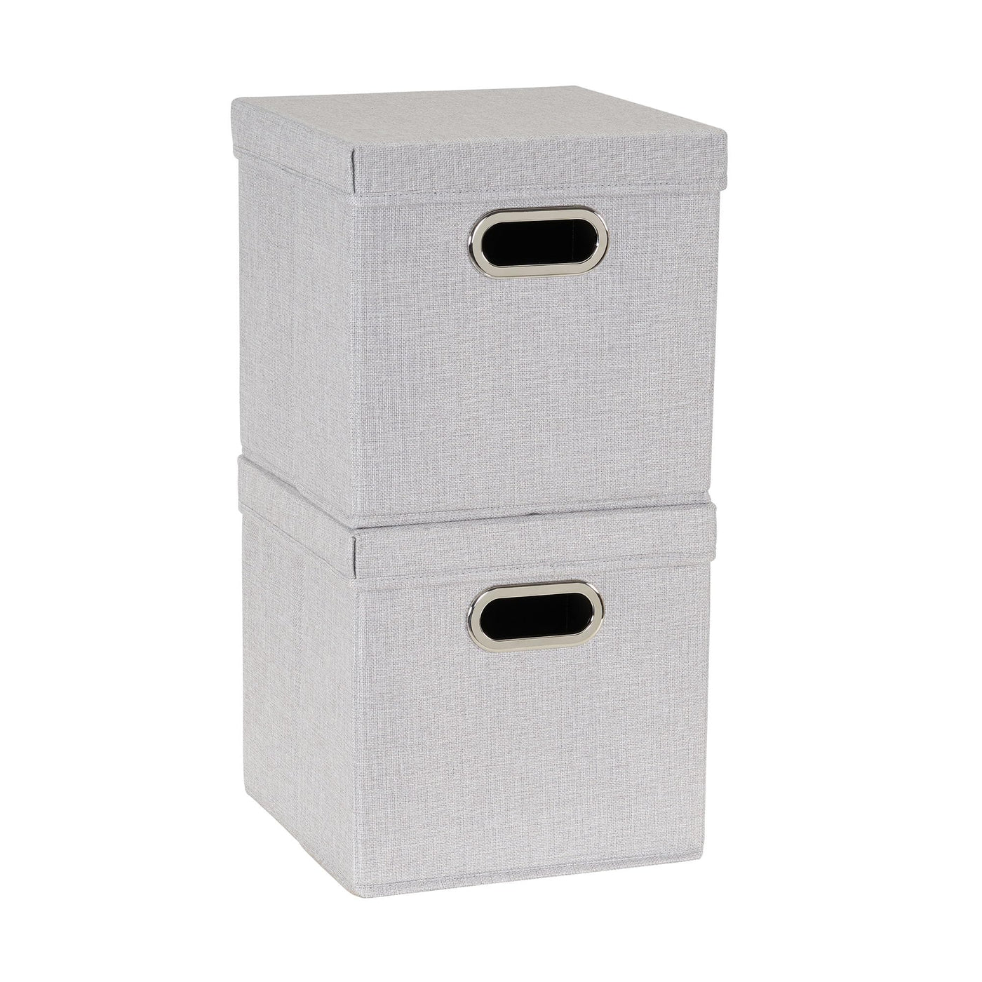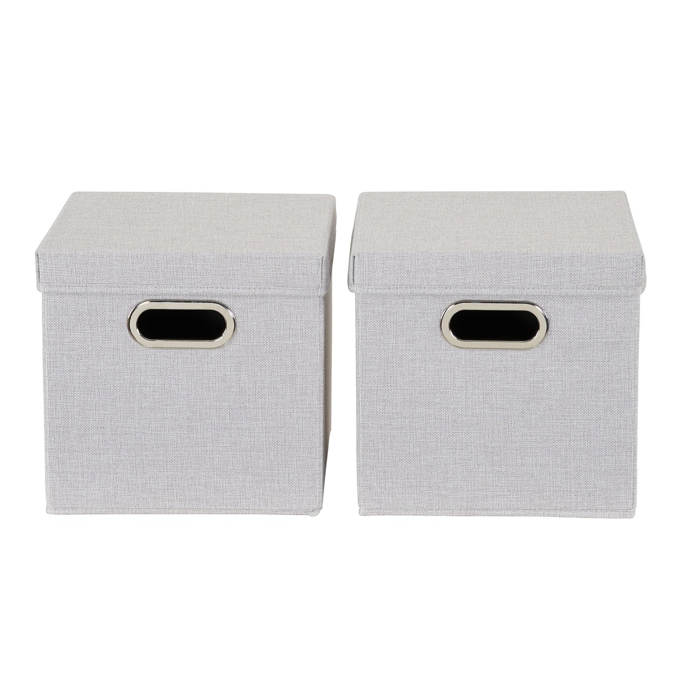 Household Essentials 804-1 Caf Cube Bin Storage Set With Lids And Handles | 2 Pack, Grey Linen