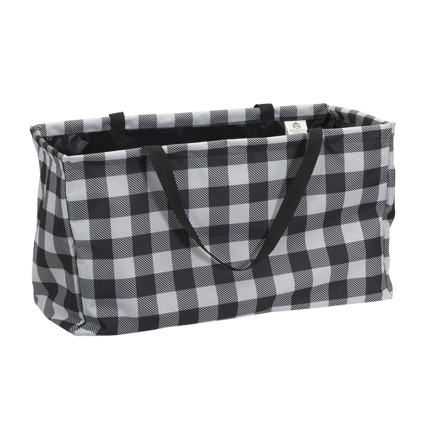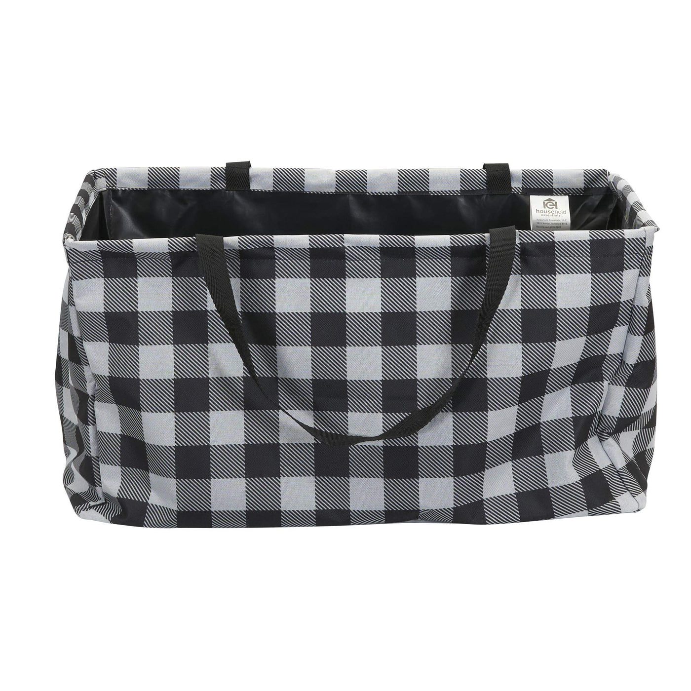 Household Essentials Krush Canvas Utility Tote | Reusable Grocery Bag | Black And White Plaid