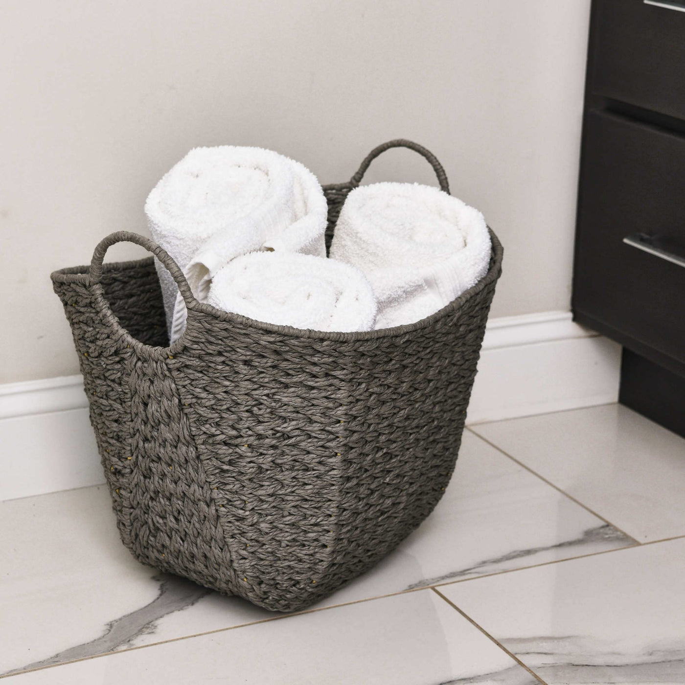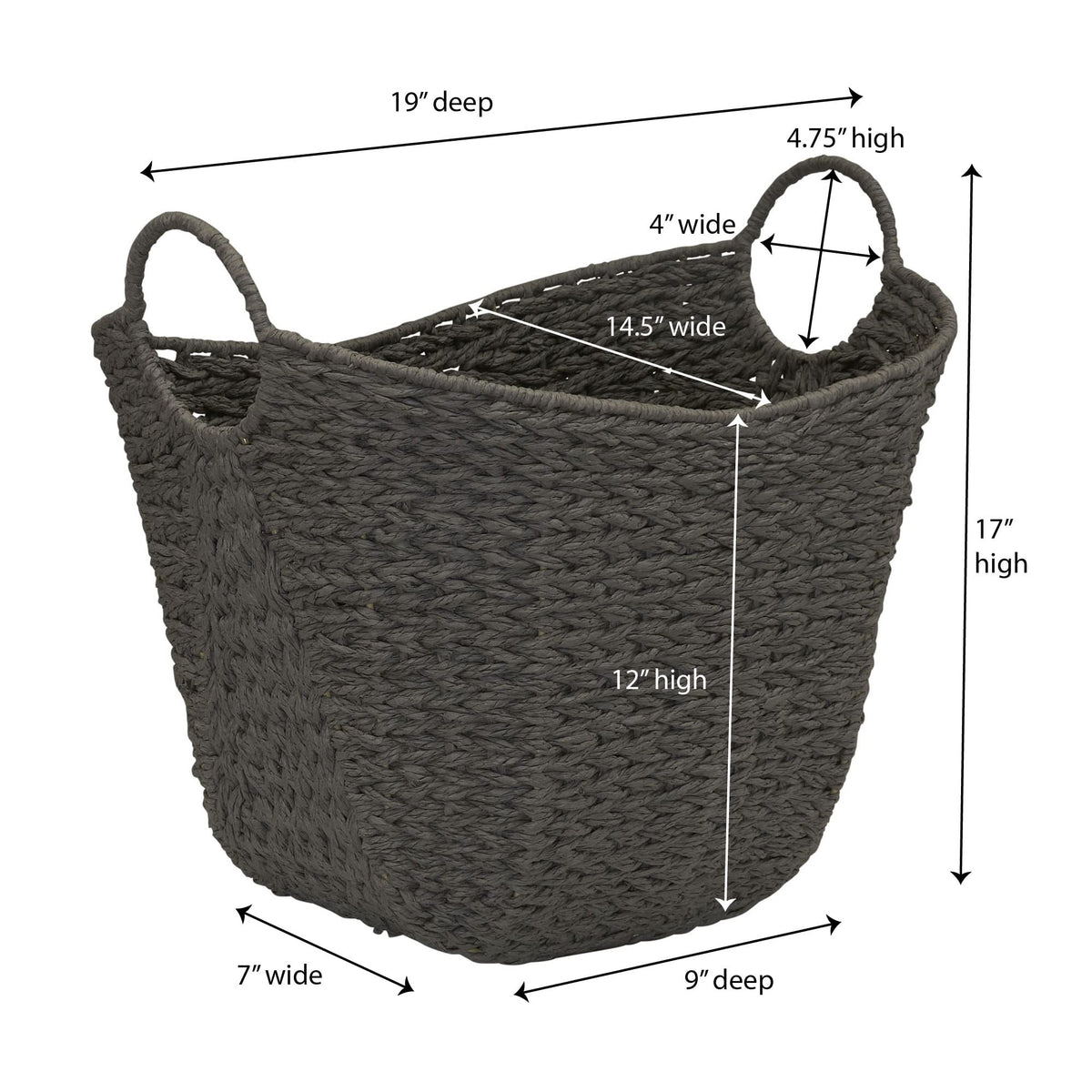 Household Essentials Natural Woven Wicker Storage Handles Basket, Gray