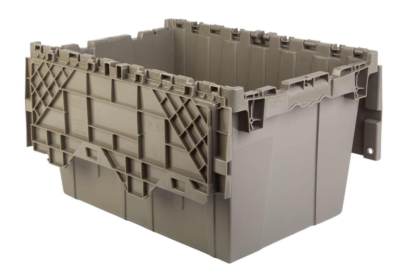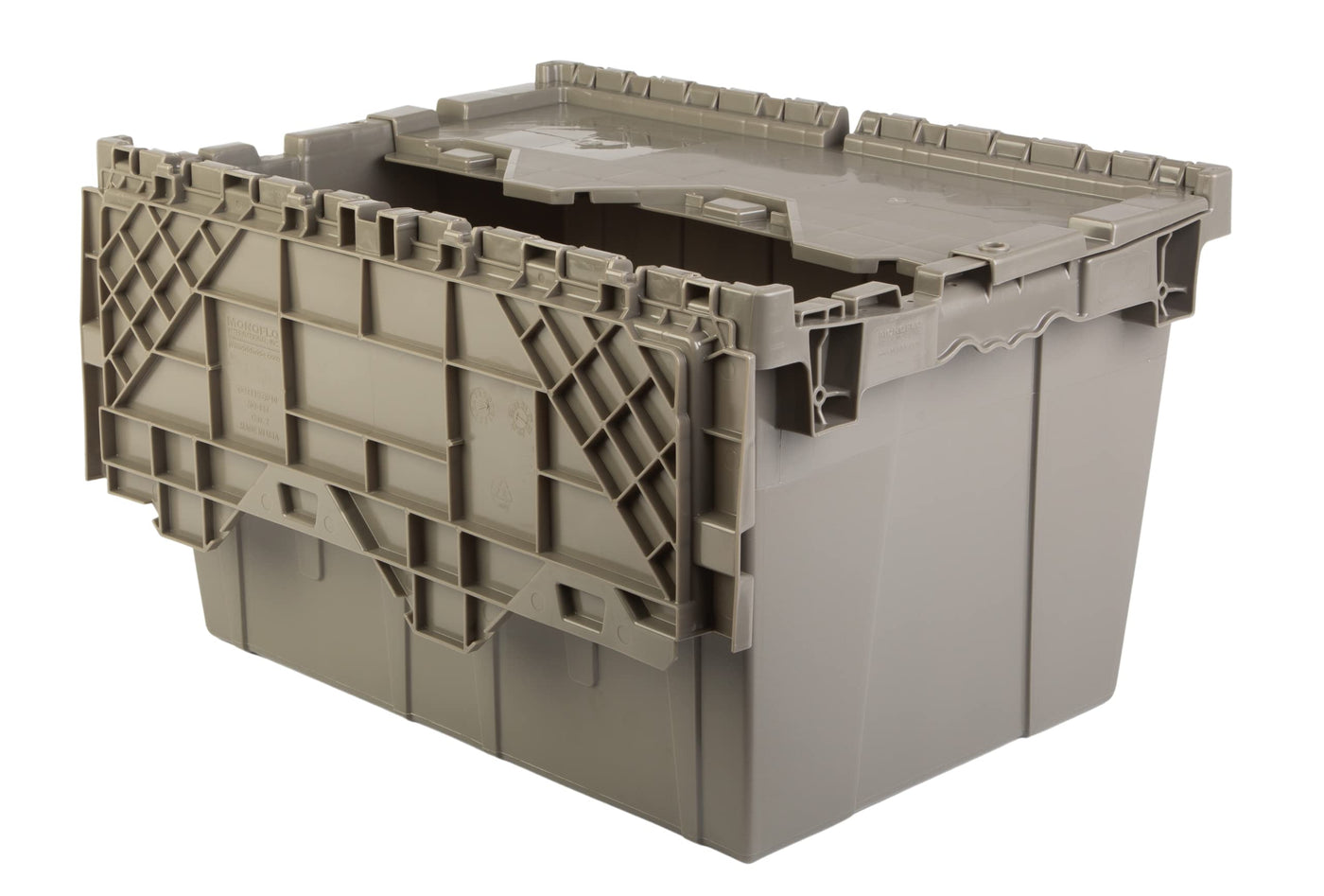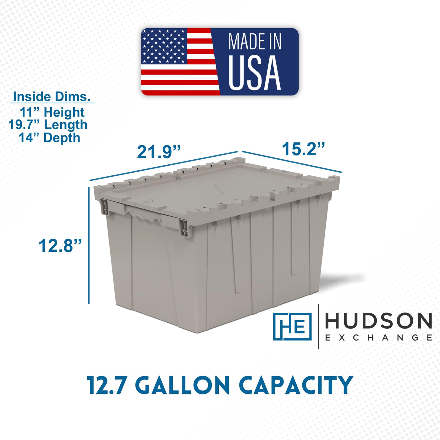 Hudson Exchange 21.9 X 15.2 X 12.8 (3 Pack) Storage Tote Distribution Container With Hinged Attached Lid, Gray/Brown